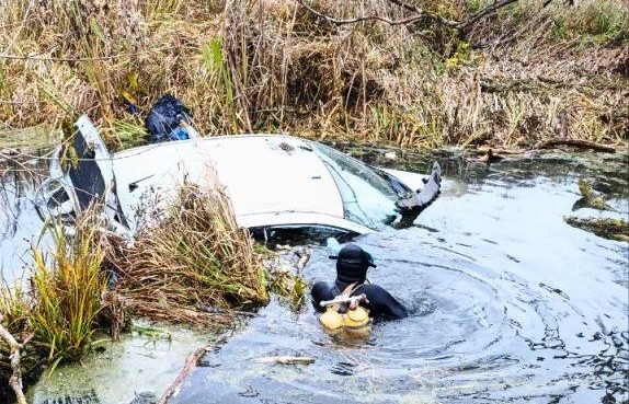Под Шуей 31 октября легковой автомобиль вылетел с трассы и затонул в придорожном водоеме.