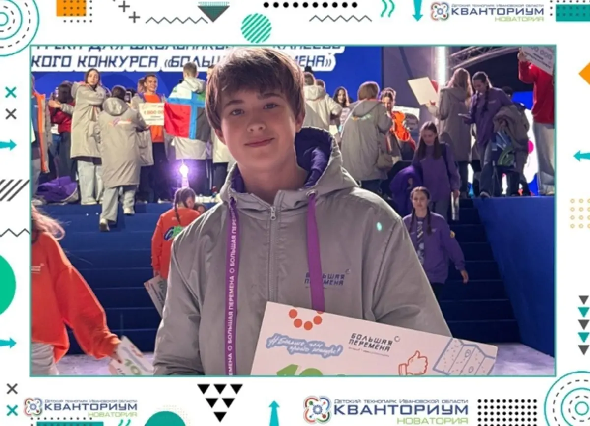 Воспитанник ивановского "Кванториума" и ученик лицея №21 Артем Волков добился успеха на всероссийском конкурсе "Большая перемена". Он стал лауреатом второй степени в финале соревнований, сообщил в соцсетях детский технопарк "Кванториум.Новатория" Иваново.