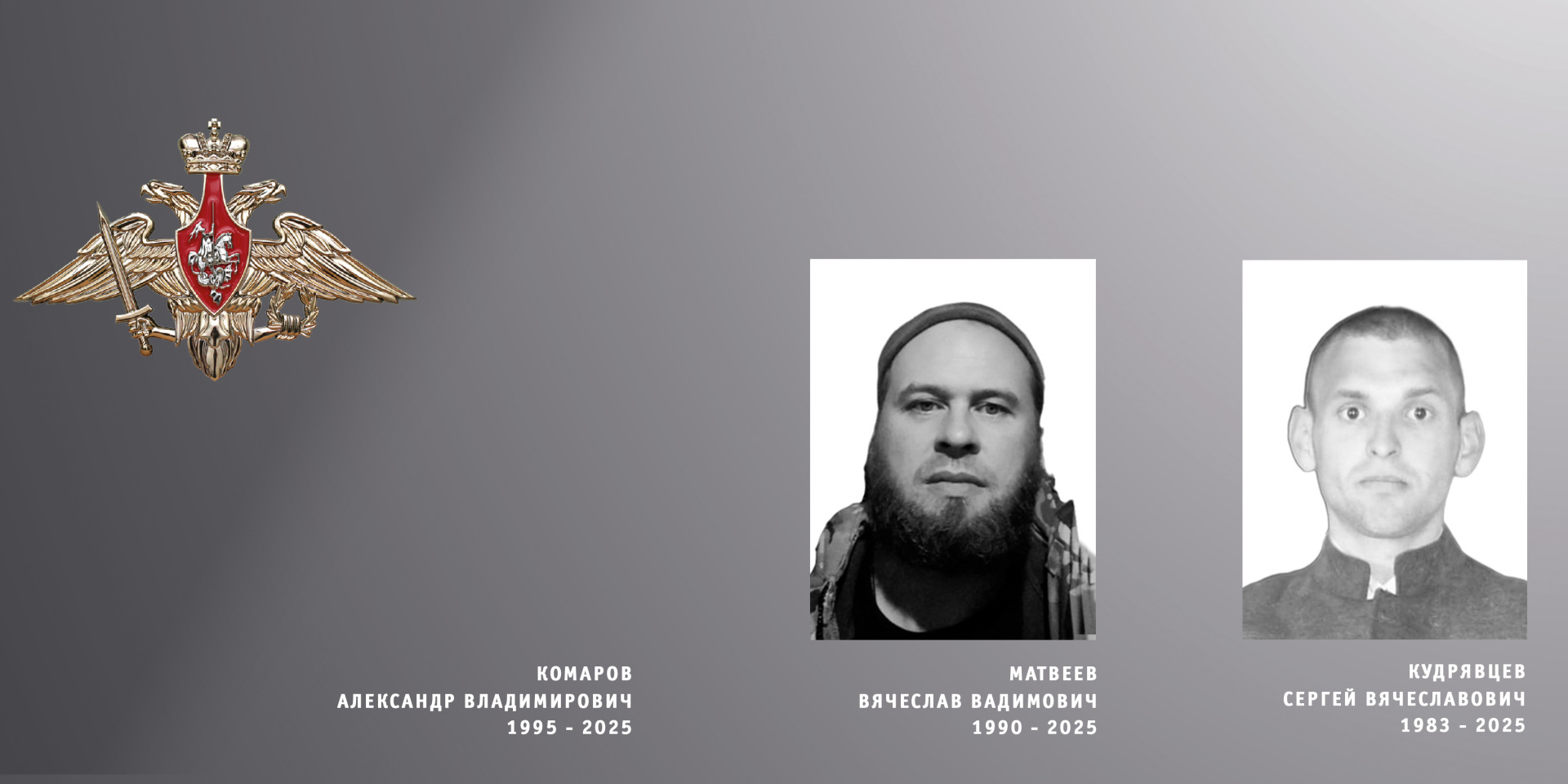 По информации пресс-службы правительства области, военнослужащие Александр Владимирович Комаров, Сергей Вячеславович Кудрявцев и Вячеслав Вадимович Матвеев проходили службу в воинских частях других регионов.