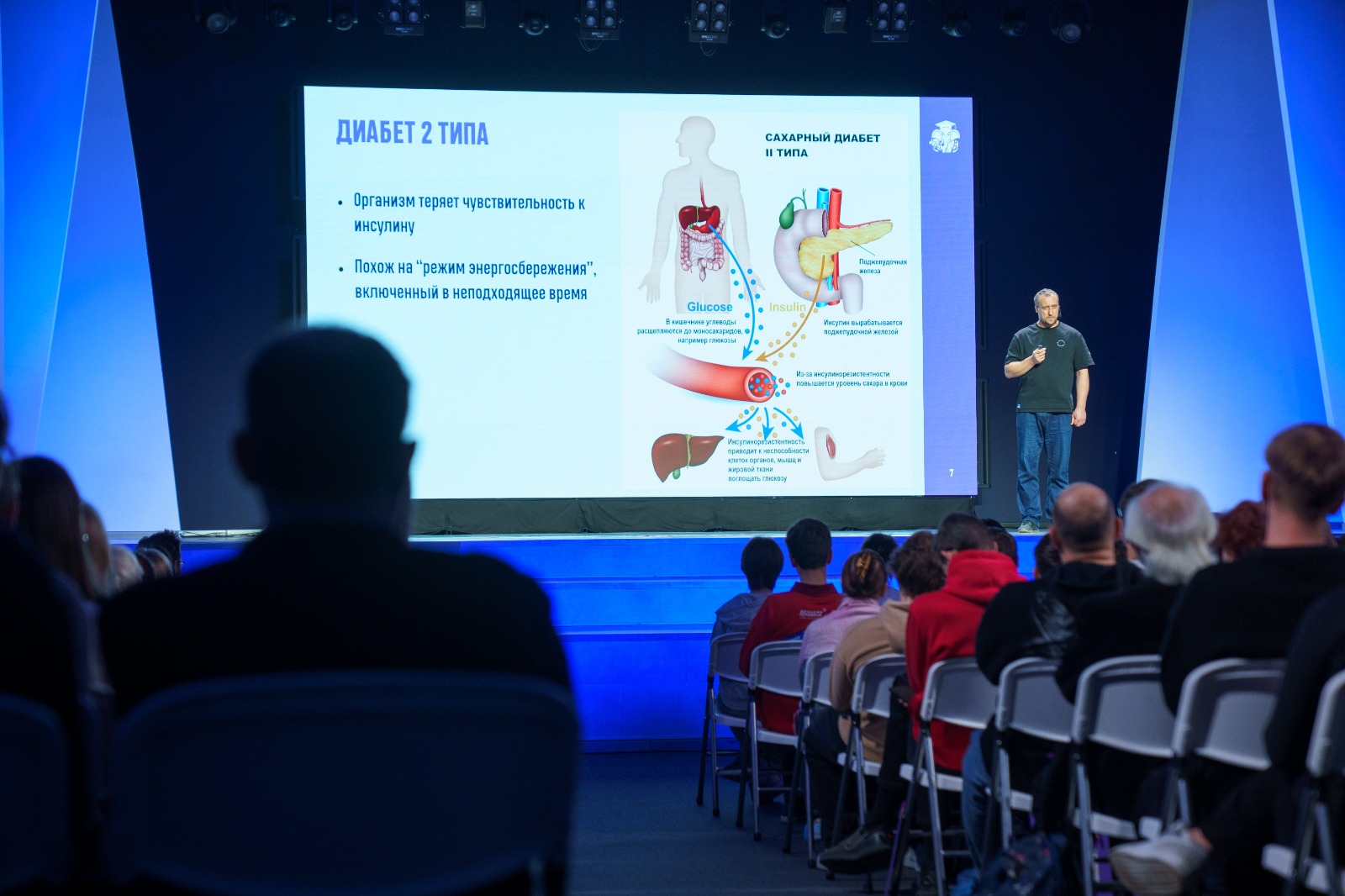 "Михаил Никитин в интересной и доступной форме рассказал о том, как жили наши предки тысячелетия назад и о последствиях влияния факторов современной среды, а также о том, почему наши анатомия и физиология на это не рассчитаны. Вместе с аудиторией Михаил Никитин порассуждал, как будет эволюционировать человек в ближайшие 100-200 лет", - говорится в сообщении.