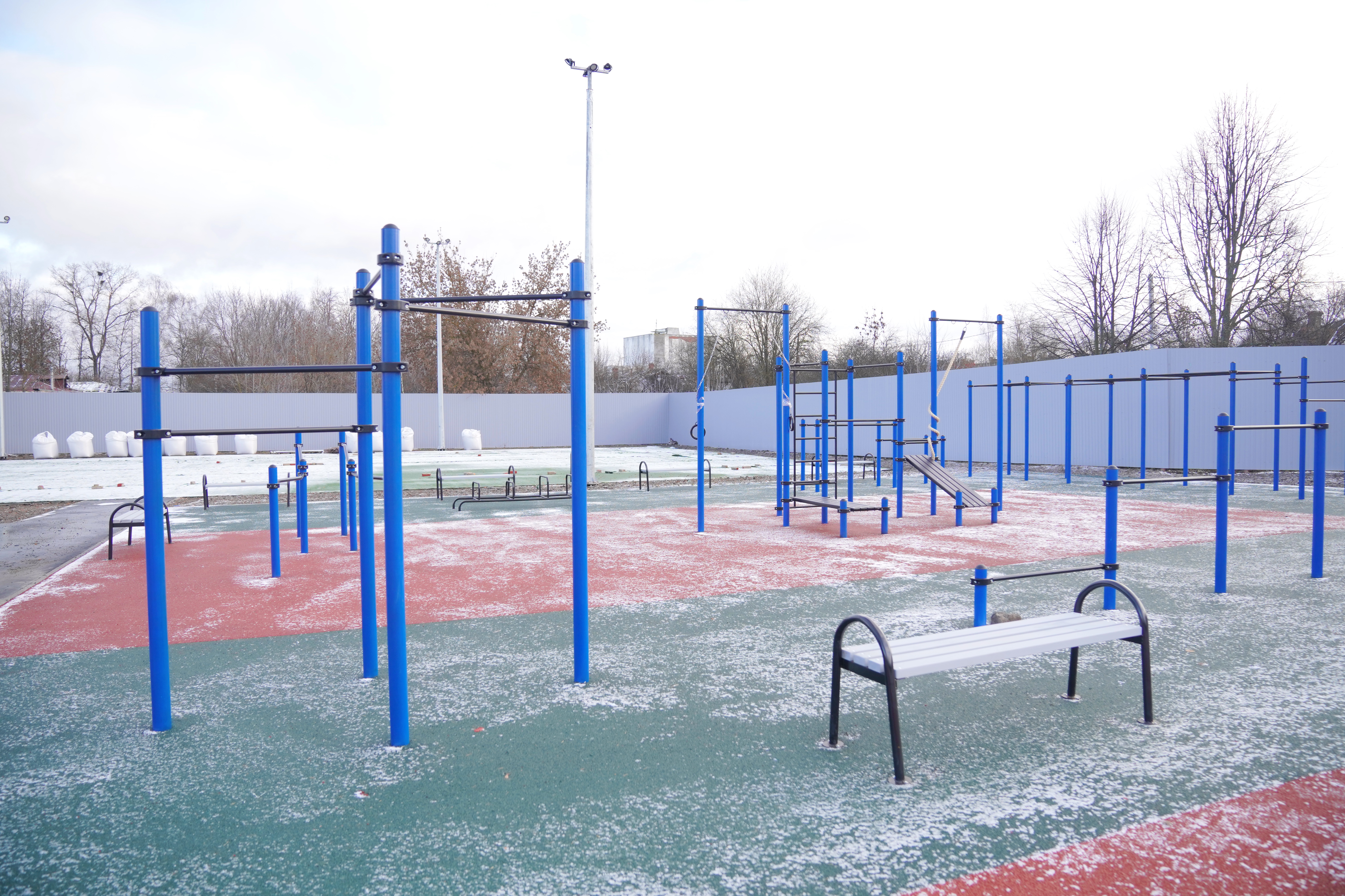 Работы на стадионе начались в мае 2025 года. За это время выполнен большой объем работ: вывезено 100 000 кубометров грунта, обустроены дренажные системы и резиновые беговые дорожки. Уложен искусственный газон на футбольном поле, установлено профессиональное освещение. Появились современные площадки для хоккея, мини-футбола и волейбола, а также воркаут-зона.