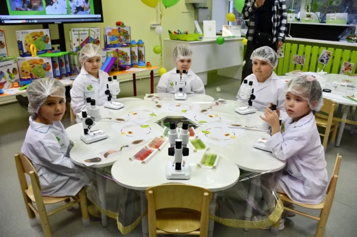 Проект представляет собой мини-лабораторию, где дошкольники знакомятся с основами биологии, экологии и биотехнологий через игровые и экспериментальные методы. Лаборатория оснащена цифровыми микроскопами, STEM-наборами – "Юный эколог", "Юный биолог", "Юный физик", "Юный энтомолог", центрами экспериментирования – вода, песок, камни, а биосад включает теплицу, огород и цветник, где дети изучают жизненные циклы растений, используя системы капельного полива Praktica 180.