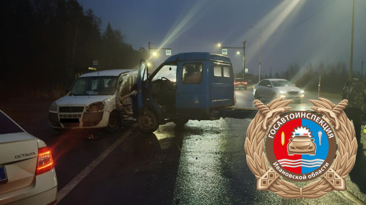 Как сообщила дорожная полиция, столкновение грузовой "Газели" и минивэна Fiat Doblo произошло в 14:20 на 18-м километре трассы Иваново – Родники.