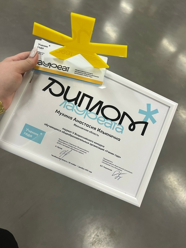Ученица школы №17 города Вичуга Анастасия Мухина на Всероссийском конкурсе "Ученик года – 2025" стала лауреатом в номинации "Общественник года". Об этом сообщает областной департамент образования и науки.