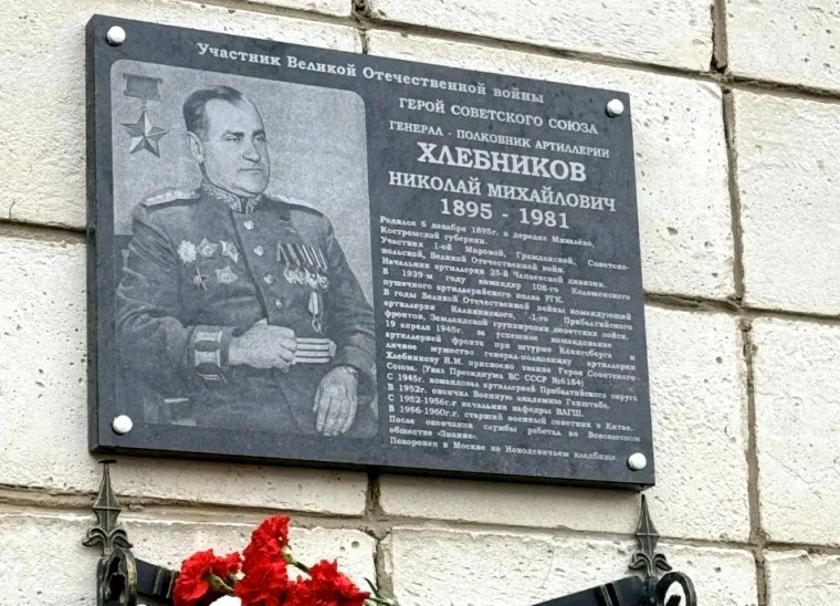 В Иванове открыта памятная доска Герою Советского Союза генерал-полковнику артиллерии Николаю Михайловичу Хлебникову, сообщает пресс-служба администрации г. Иванова. Она установлена на стене гимназии №36, которая расположена на улице, названной по имени героя.