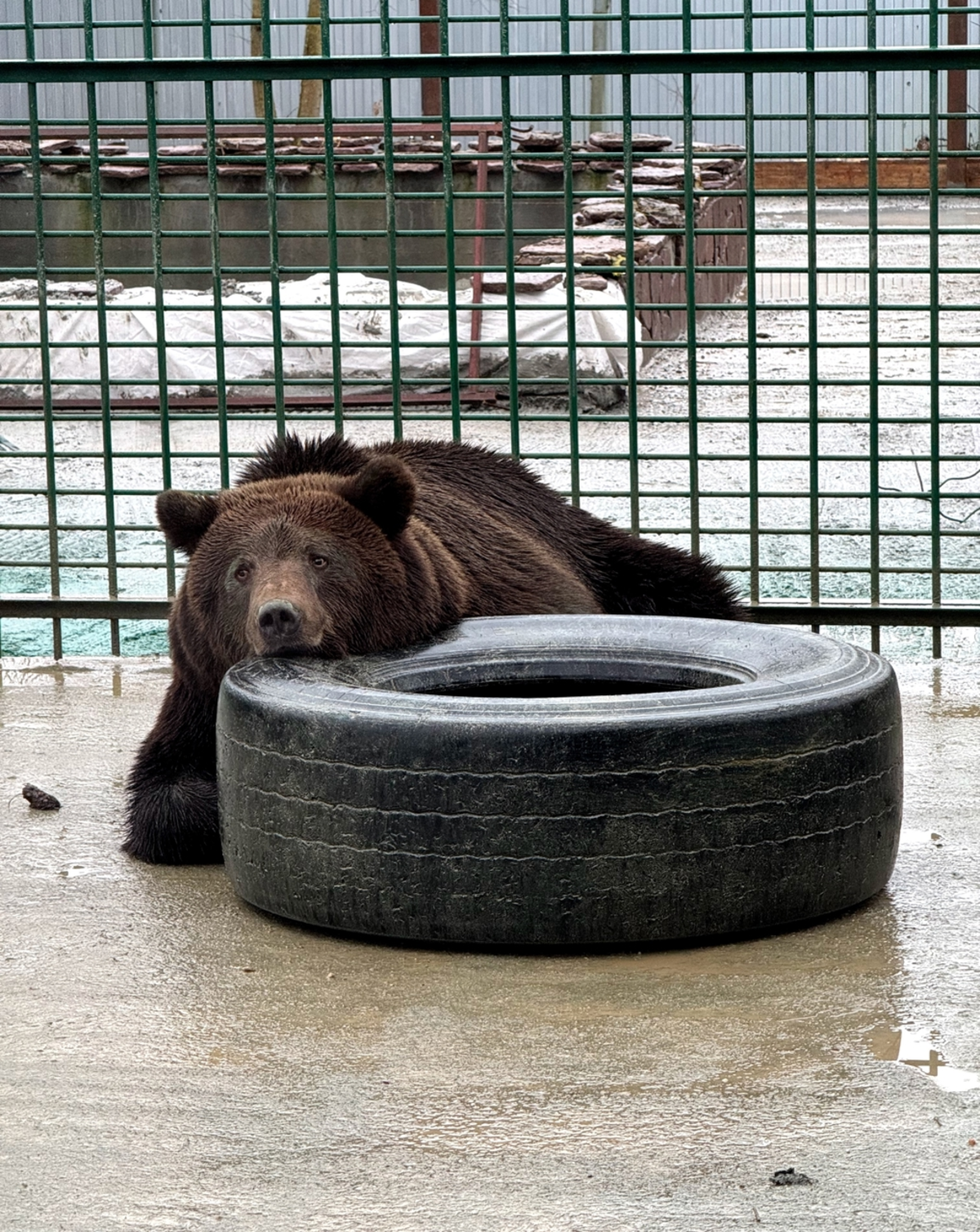 Умка Муромский, как стали называть в "Легенде" этого медведя, девять лет прожил в клетке размером 1,5 метра в одном из населенных пунктов Муромского района Владимирской области – при том, что это достаточно крупный зверь. В этой клетке он не мог повернуться и постоянно травмировал лапы о решетчатый пол (деревянного настила там не было). Всю зиму его клетку не чистили, а весной вывозили на манипуляторе к озеру и частично погружали в воду, чтобы "помыть". Умка попал в "Легенду" в августе.