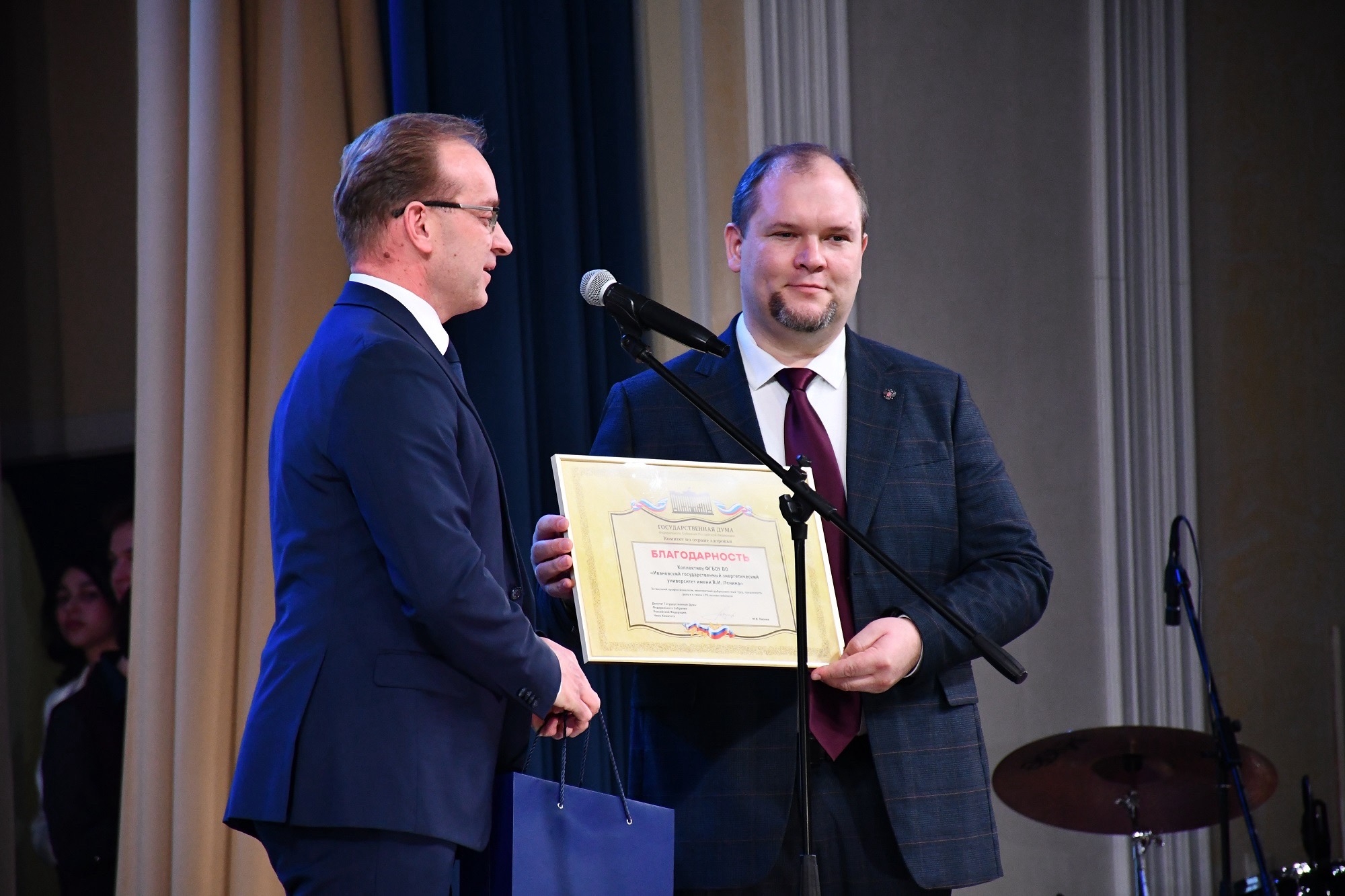 В пятницу, 12 декабря, Ивановский государственный энергетический университет им. В.И. Ленина устроил торжественный вечер в честь своего 95-летия. Поздравить вуз с праздником пришли чиновники и депутаты всех уровней с благодарственными письмами и Почетными грамотами для нынешних работников, выпускники прошлых лет и ветераны. Студенты подготовили творческую программу.