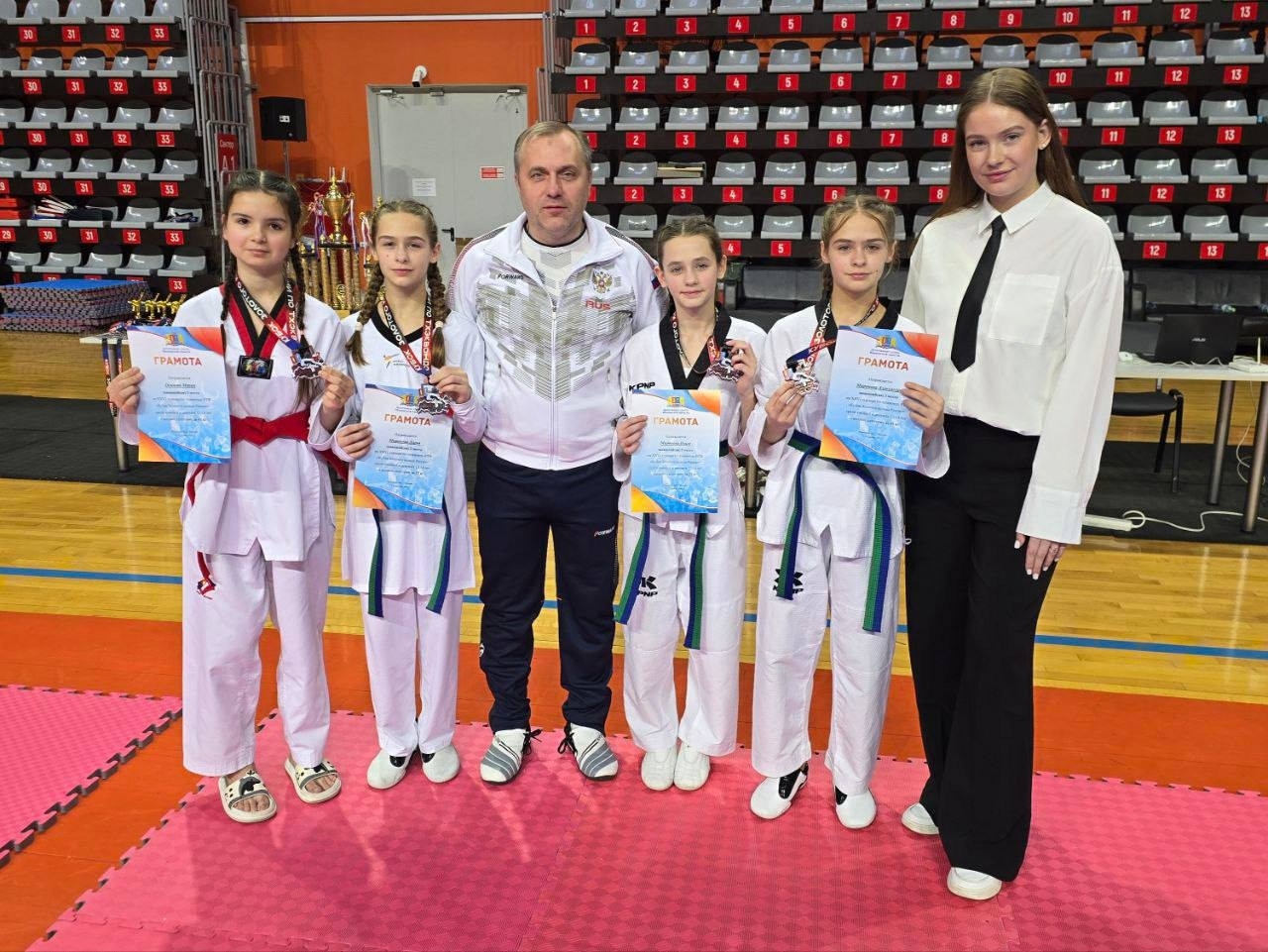 Полина Полтарескул и Дарья Борисова в торжественной обстановке получили заветные черные пояса.