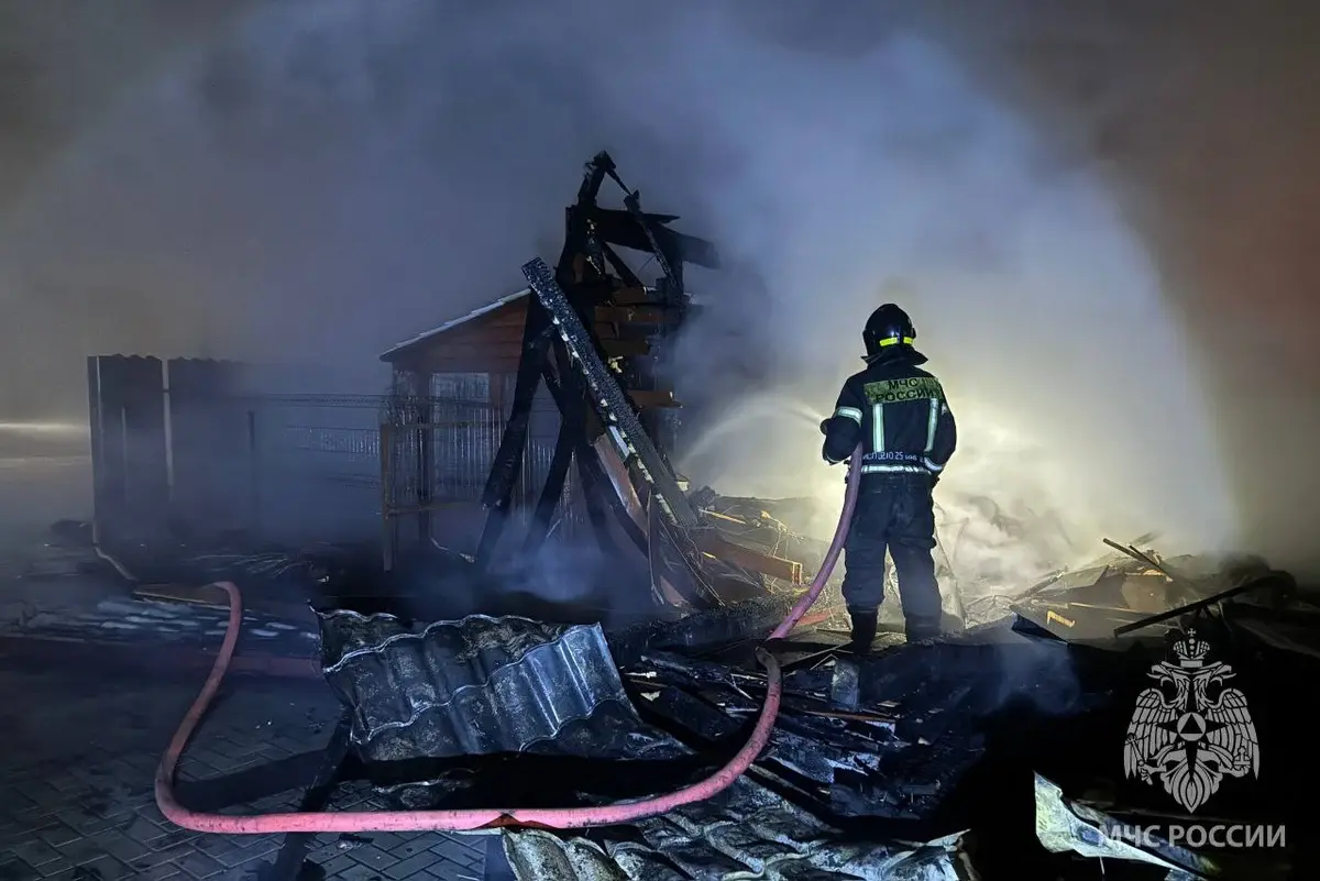 "Пожар был ликвидирован на площади 144 квадратных метра. Причину устанавливают сотрудники дознания", — рассказала пресс-служба ГУ МЧС. Судя по фото, от строения практически ничего не осталось.