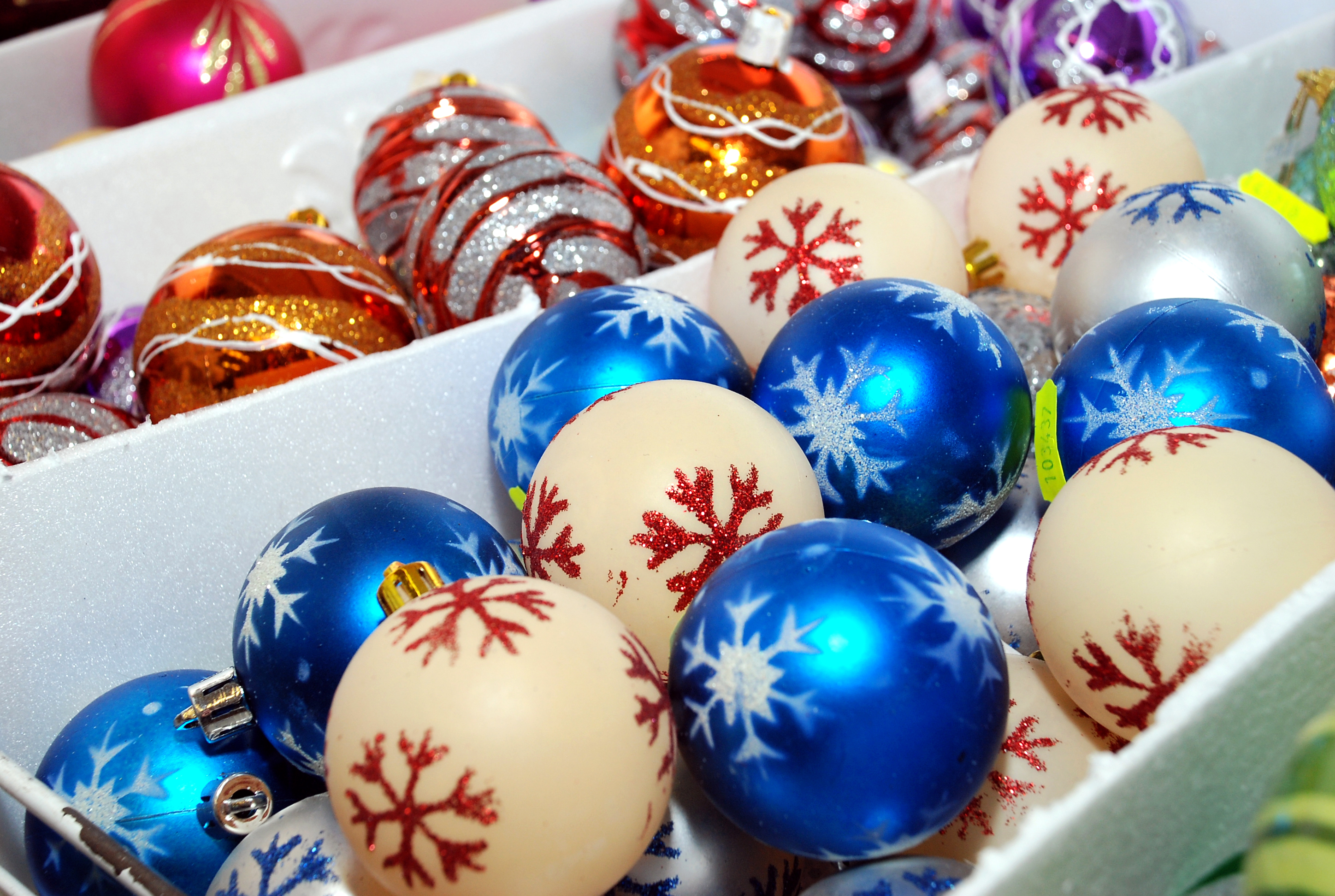 Для елочных игрушек важна прочность и отсутствие резкого запаха. Изделия из пластика или других небьющихся материалов безопаснее стеклянных. Элементы крепления должны быть надежными.