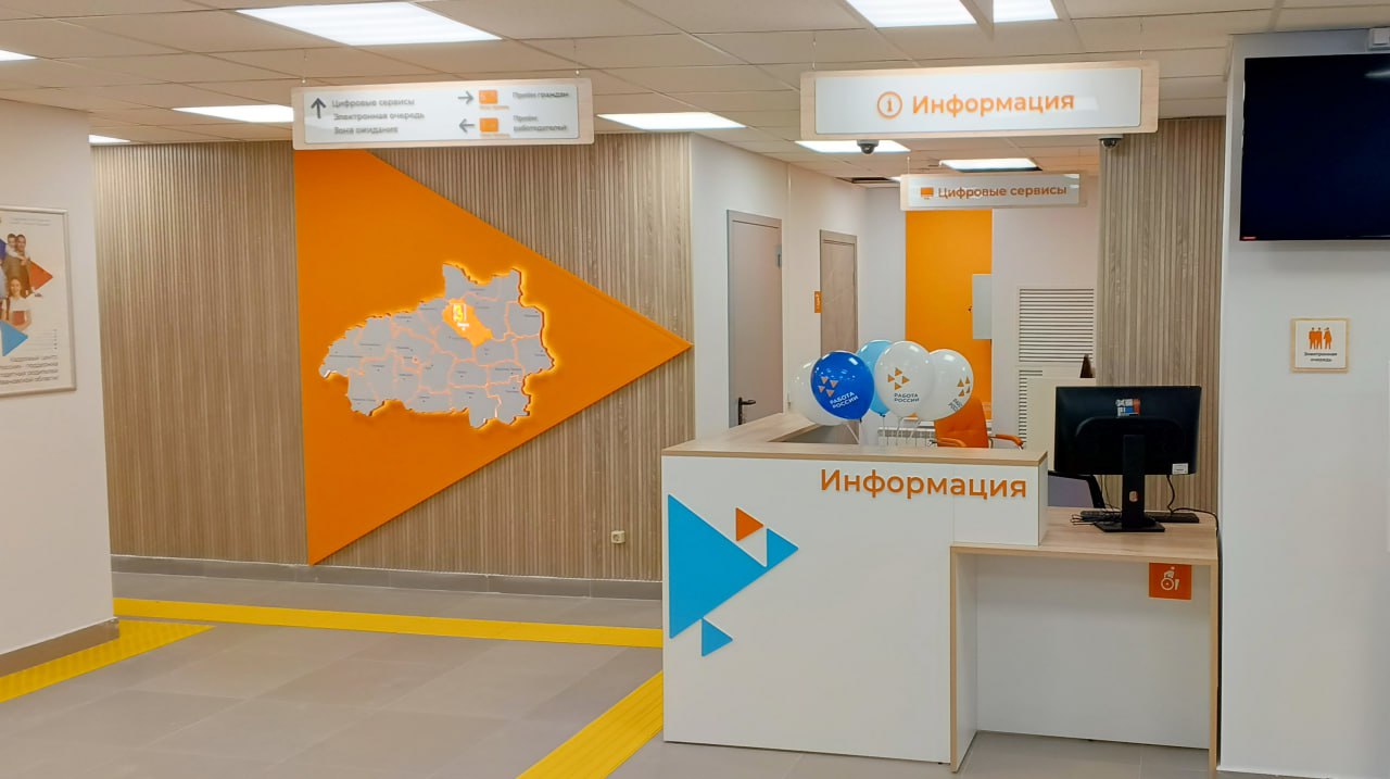 В здании полностью обновили интерьер, закупили современную мебель и оборудование. Центр оформили в едином фирменном стиле бренда "Работа России". Для удобства посетителей создали отдельные зоны для работы с соискателями и работодателями.