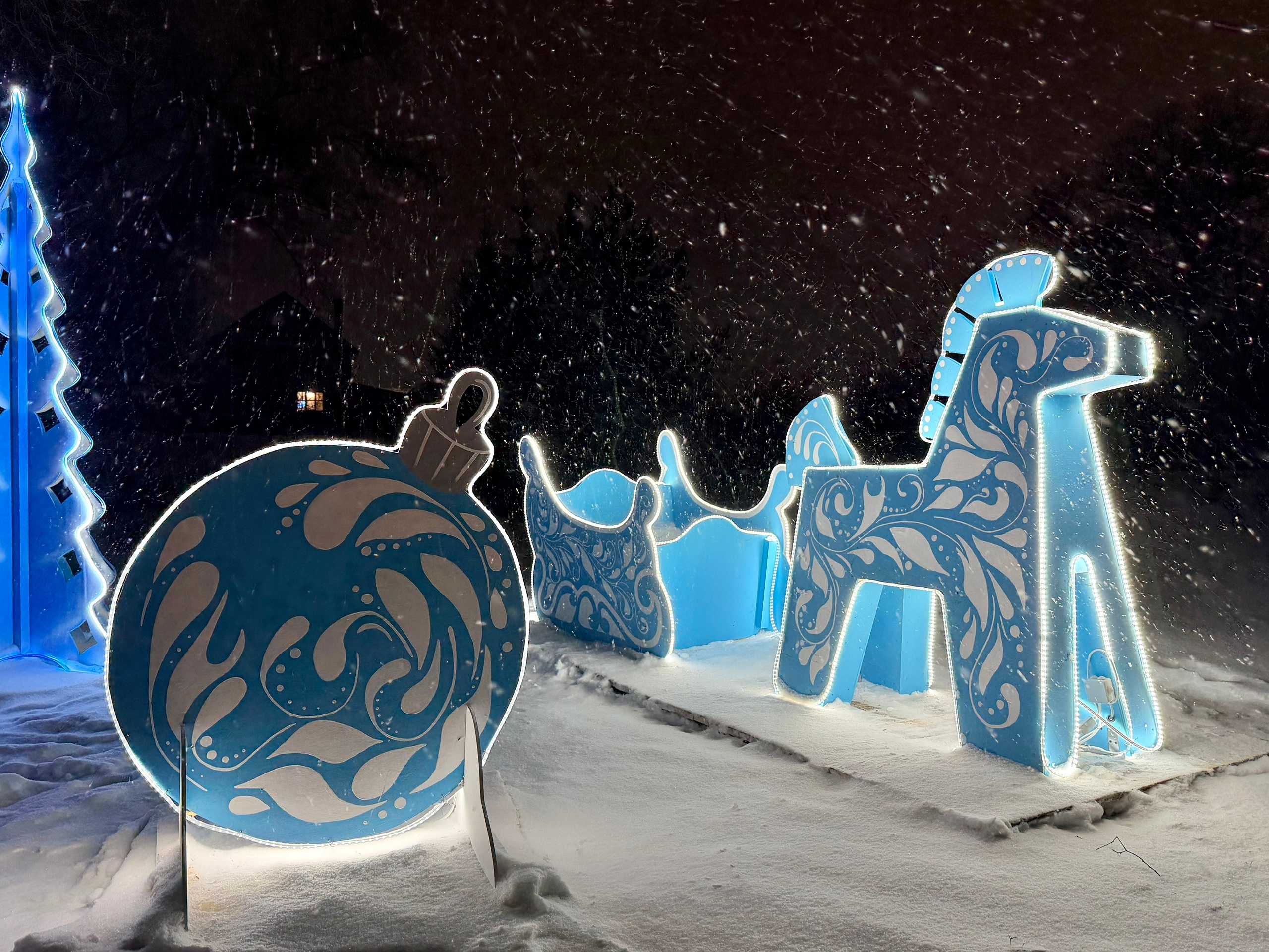 Беседка возле автовокзала тоже преобразилась к праздникам: мастера Валерий и Сергей Махаловы все узоры и фигурки вырезали вручную.