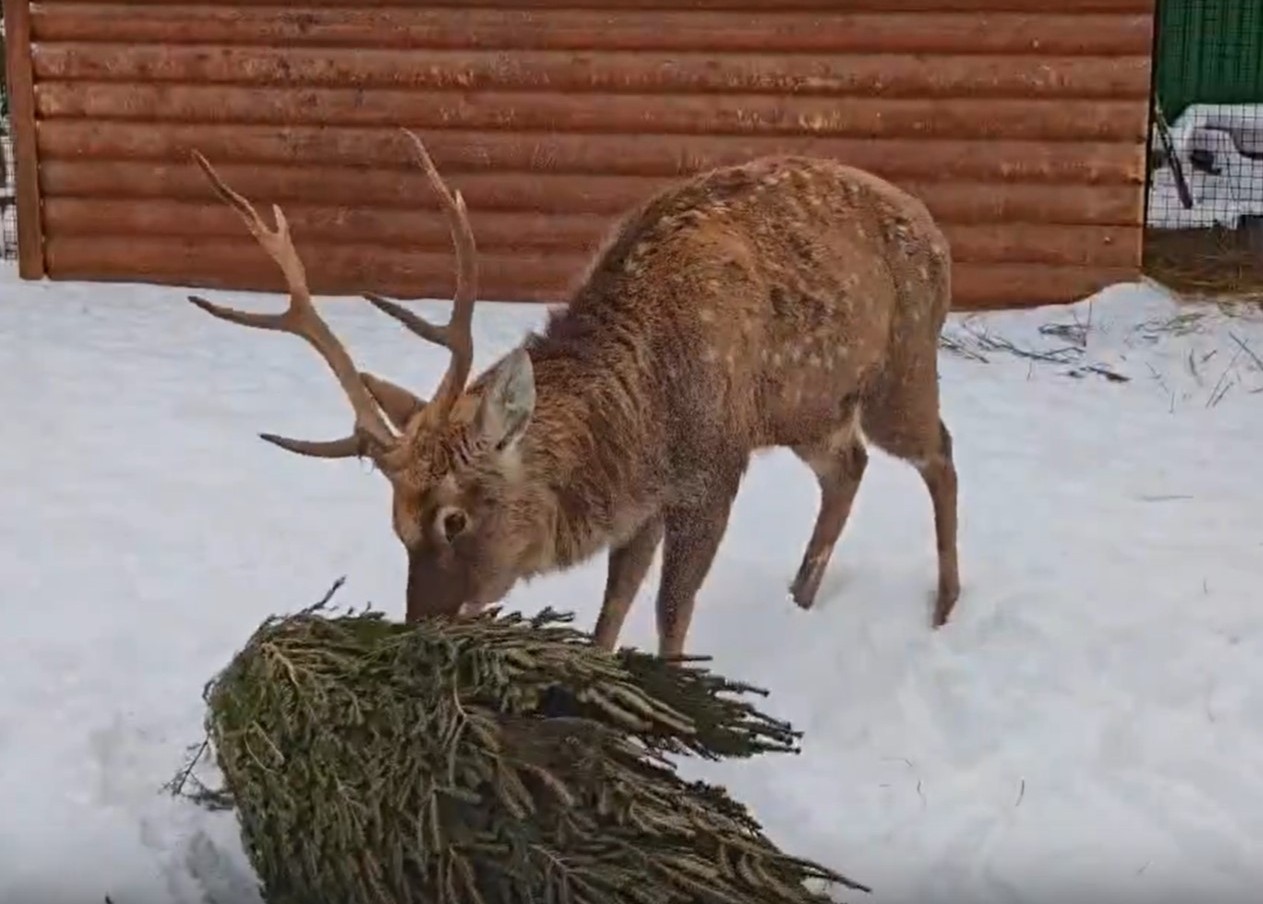 Накануне Нового года животным зоологического сада подарили более 100 елок на корм животным, сообщает Ивановский зоопарк. Сотрудники принимали только нераспроданные елки от юрлиц: домашние после праздника могут быть вредны животным из-за остатков мишуры, дождика и прочего.