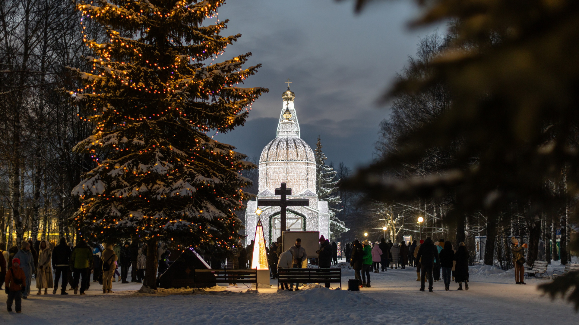 Ежедневно в 17 часов открывается "Парк Рождественского Чуда", где гости фестиваля могут прогуляться по аллеям, залитым светом, насладиться атмосферой православного празднования Рождества. Праздничными инсталляциями украшен центр Шуи, в их числе - полюбившийся гостям фестиваля "Храм", установленный в память о красивейшем древнем храме Спаса Нерукотворного. А на фасаде кинотеатра "Родина" оживают открытки, признанные лучшими на традиционном конкурсе фестиваля.