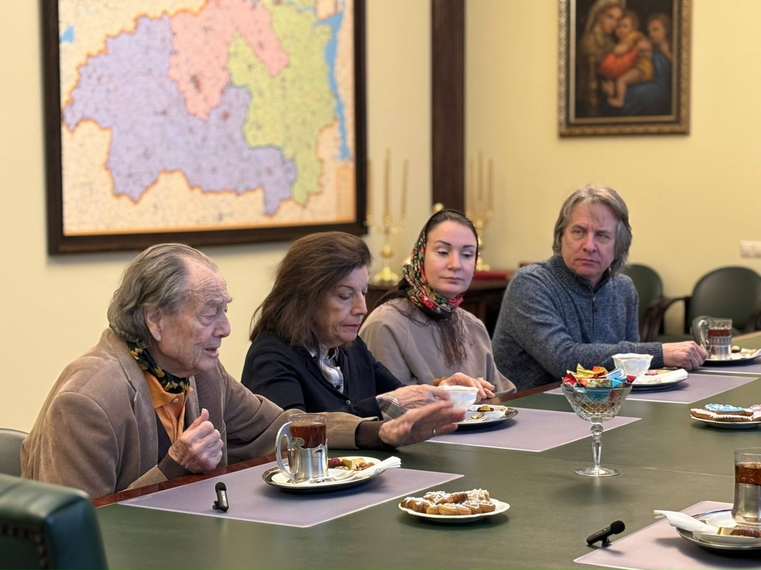 Встреча прошла в Иваново-Вознесенском епархиальном управлении. В разговоре приняли участие заместитель председателя Общественной палаты Ивановской области, доктор исторических наук, профессор Владимир Околотин и супруга графа Югетт.