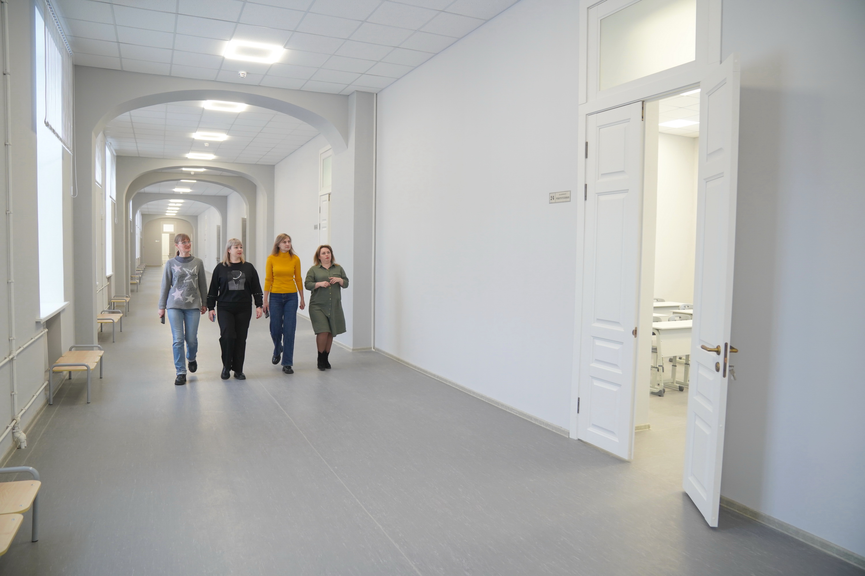 Ремонт затронул все системы: полностью заменили инженерные коммуникации, кровлю, полы, окна и двери. При этом строители сохранили исторический облик фасада и интерьеров. Сейчас в гимназии устанавливают новую мебель и современное оборудование, включая интерактивные панели.