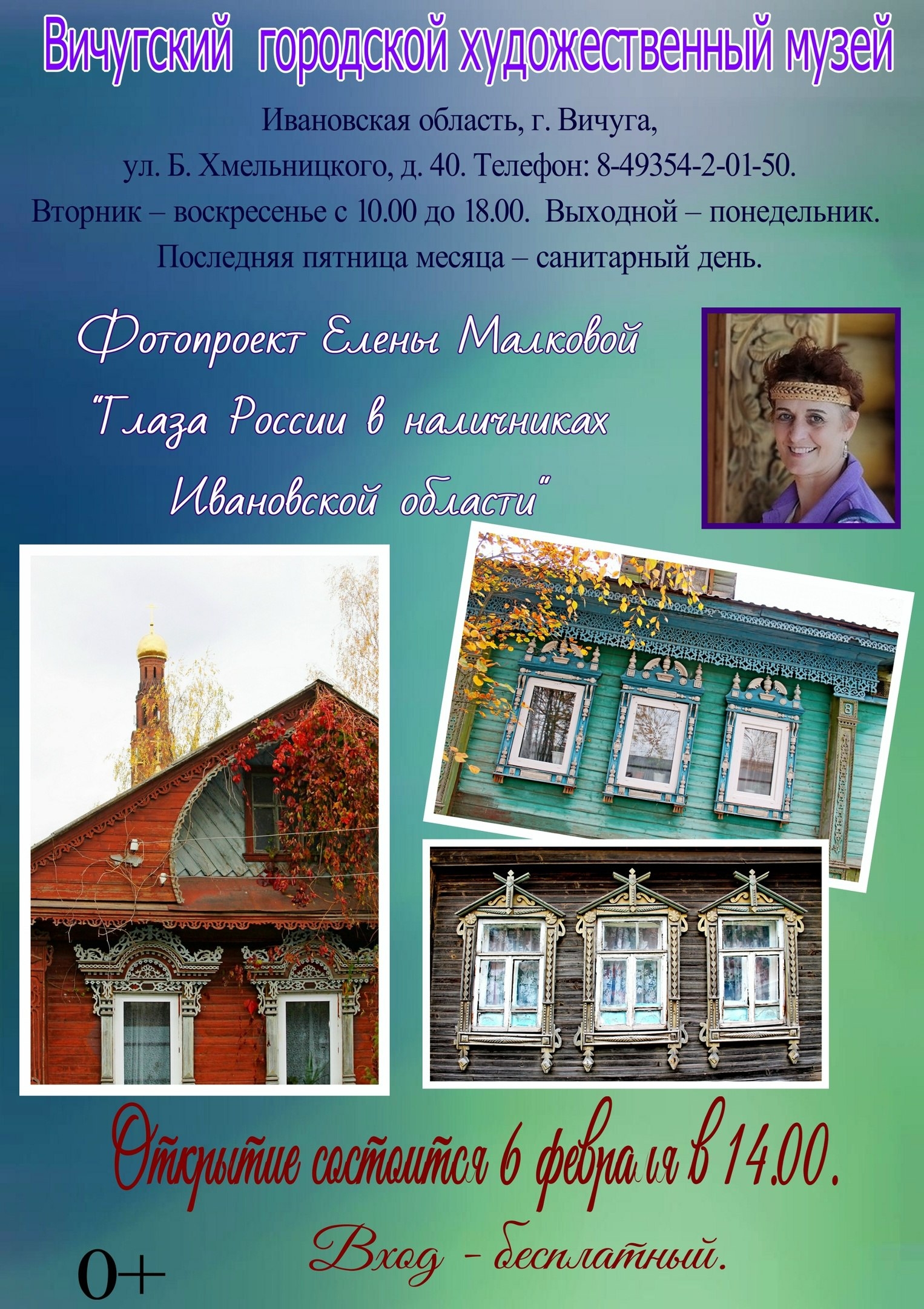 В пятницу, 6 февраля, в 14:00 в Вичугском городском художественном музее откроется выставка журналиста и фотографа Елены Малковой "Глаза России в наличниках Ивановской области" (0+). Посетители смогут увидеть фотографии образцов деревянной резьбы из 25 деревень и сел региона, в том числе и областного центра, вход свободный. Об этом сообщила Елена Малкова в "ВКонтакте".