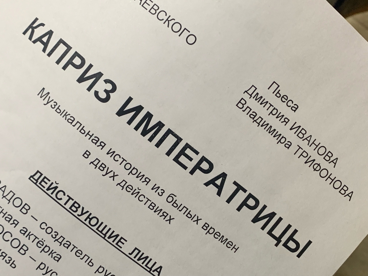 Ивановский музыкальный театр начал репетиции нового мюзикла "Каприз императрицы" композитора Максима Дунаевского и авторов либретто Дмитрия Иванова и Владимира Трифонова. Первую читку с актерами провел главный режиссер театра, режиссер-постановщик мюзикла Антон Лободаев. Об этом рассказала пресс-служба театра в "ВКонтакте".