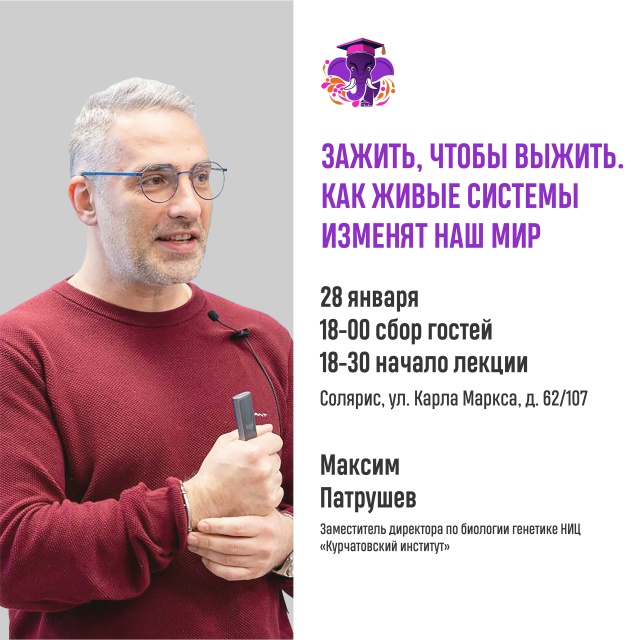 СЛОН открывает новый сезон 2026, сообщает центр выявления и поддержки одаренных детей Ивановской области "Солярис" в "ВКонтакте". Максим Патрушев – заместитель директора по биологии и генетике, НИЦ "Курчатовский институт" – прочтет лекцию "Зажить, чтобы выжить. Как живые системы изменят наш мир".