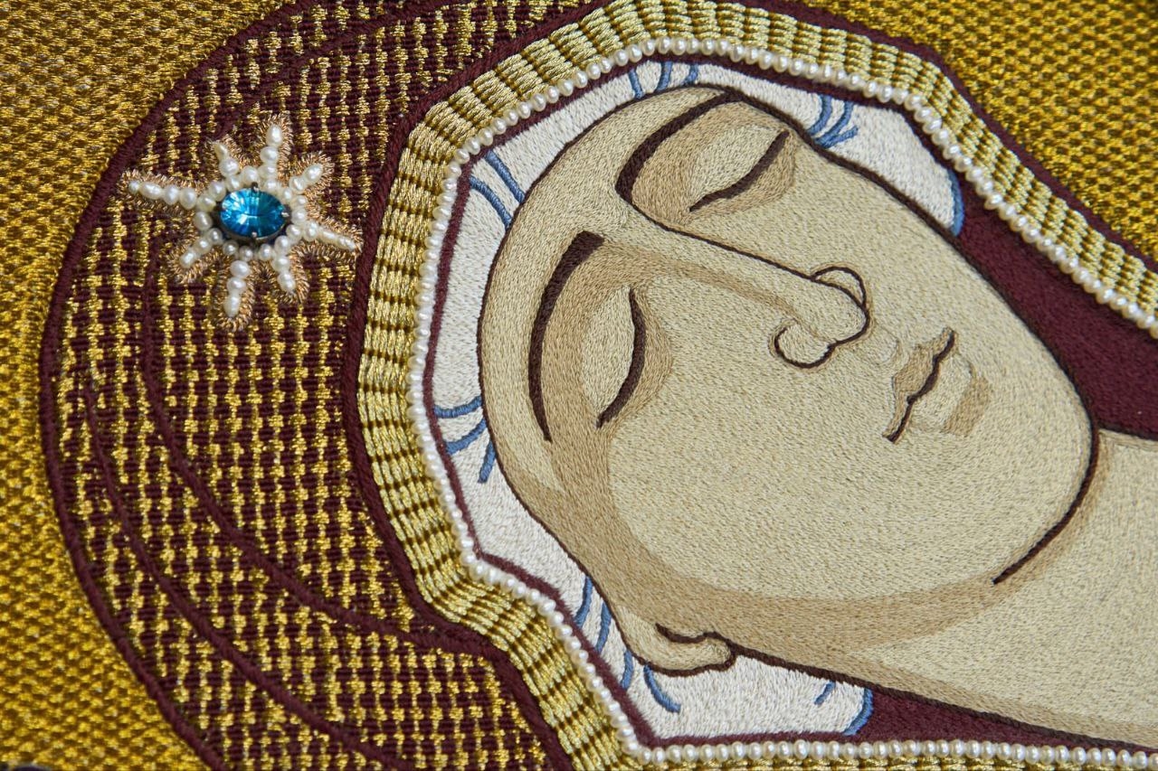 В Введенском женском монастыре в Иванове появилась новая святыня – шелковая плащаница Божией Матери. Ее около пяти лет подряд вручную тайно вышивали монахини обители. Об этом сообщается на странице монастыря в "ВКонтакте".