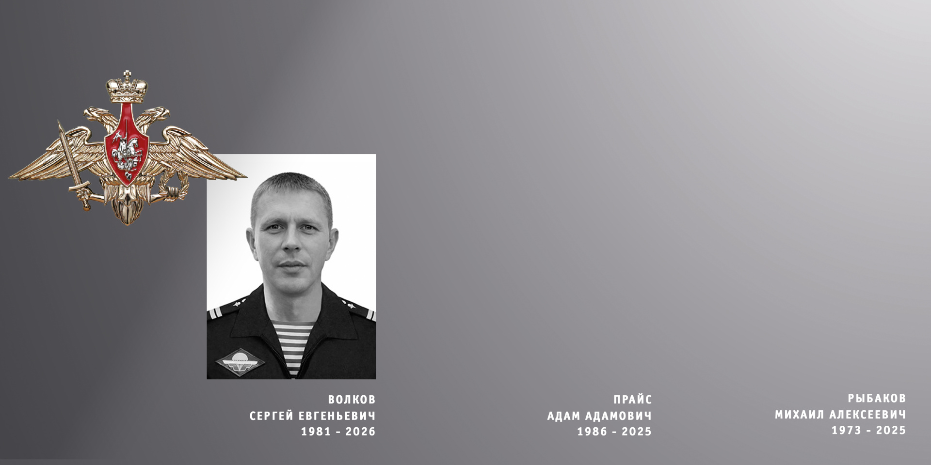Бойцы Сергей Волков (1981-2026), Адам Прайс (1986-2025) и Михаил Рыбаков (1973-2025) служили в войсковых соединениях других субъектов РФ.