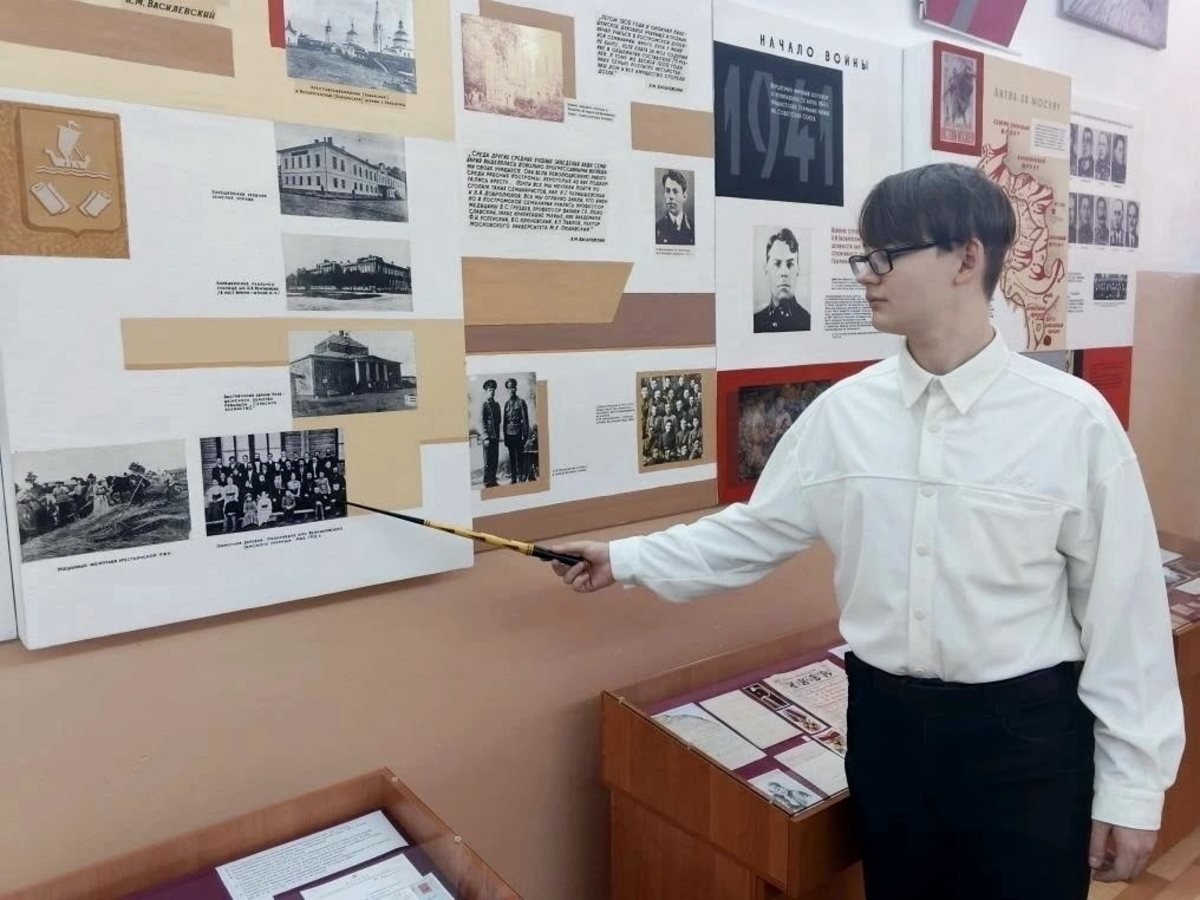 Егор Саховский представил исследовательскую работу, раскрывающую новые подробности в биографии А.М. Василевского и семьи Василевских. Его научным руководителем выступил А.В. Смирнов, руководитель Музея Маршала А.М. Василевского.