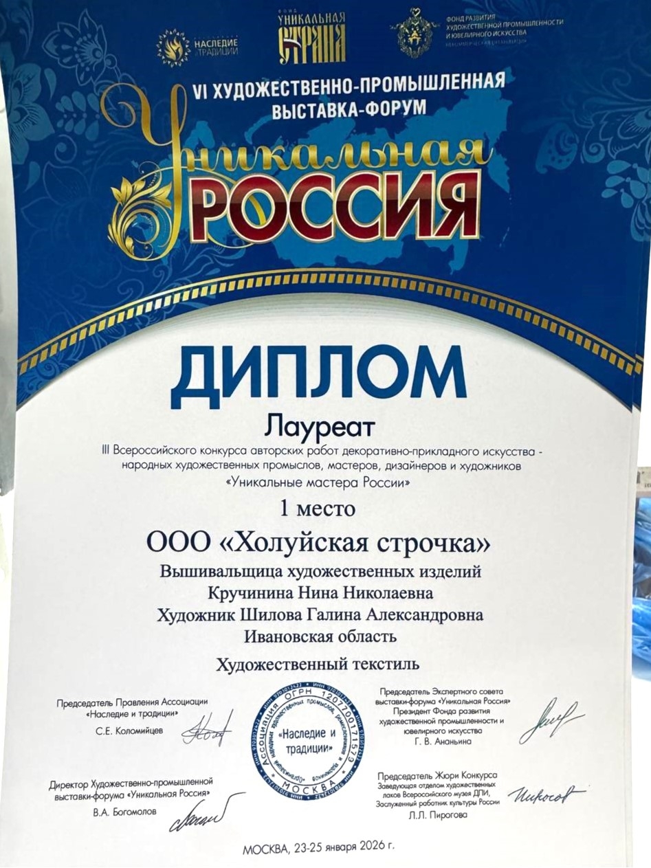 В рамках выставки прошел всероссийский конкурс "Уникальные мастера России". В номинации "Художественный текстиль" победителем признана легендарная "Холуйская строчка".