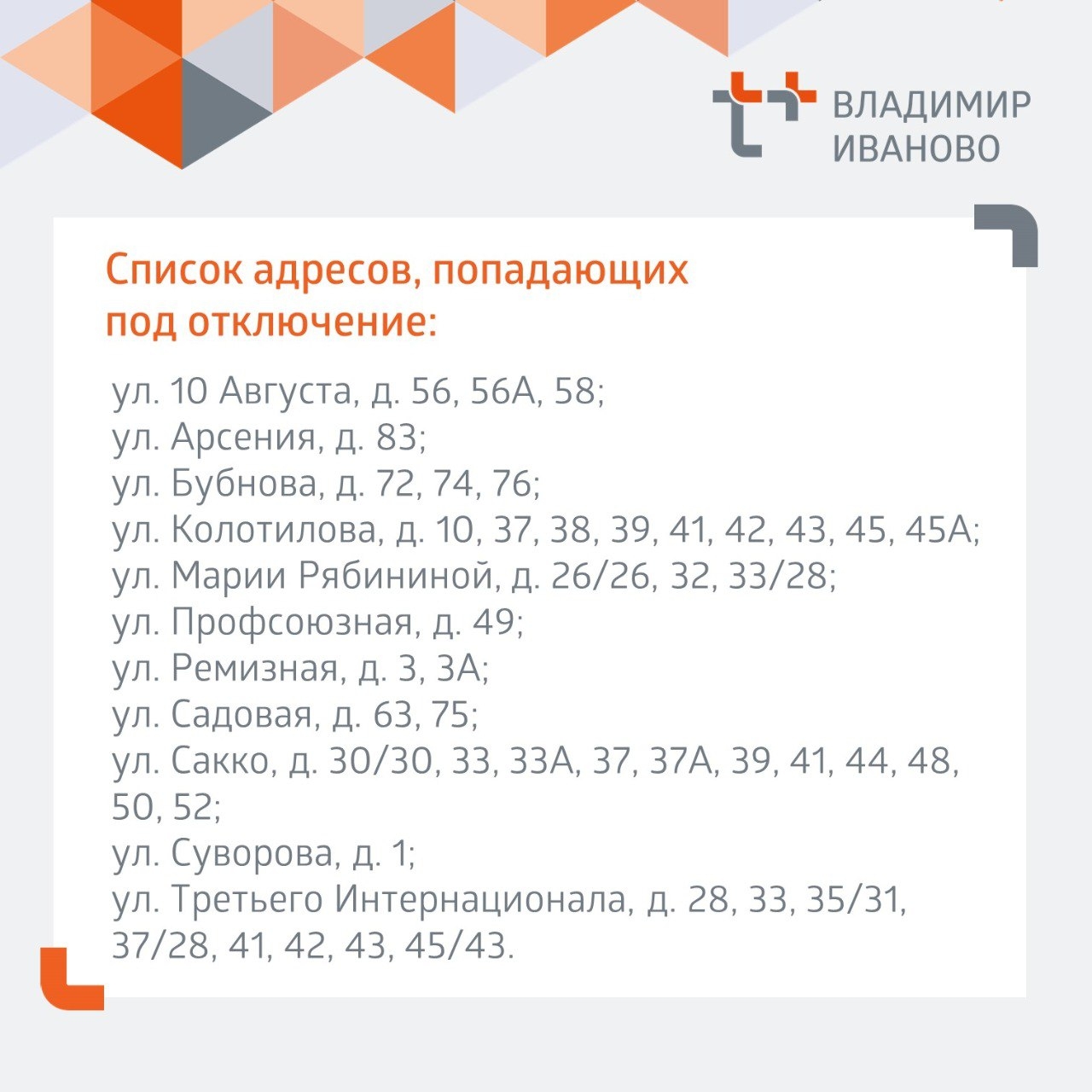 Под отключение отопления и горячей воды на время ремонта попали: