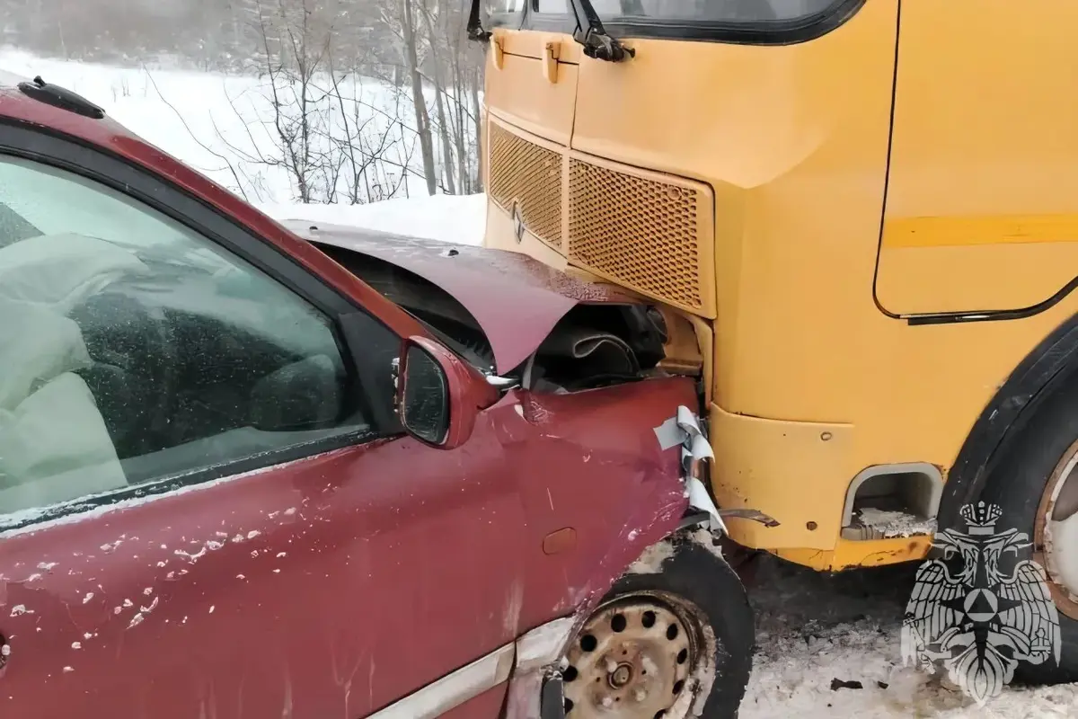 В пятницу, 13 февраля, в 14:26 в деревне Белино Фурмановского района произошло лобовое столкновение школьного автобуса ПАЗ и легкового автомобиля, рассказали в пресс-службе ГУ МЧС по Ивановской области.