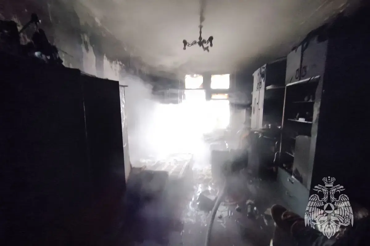 Вызов поступил в 12:43. Когда пожарные прибыли на место, горела квартира на втором этаже здания.