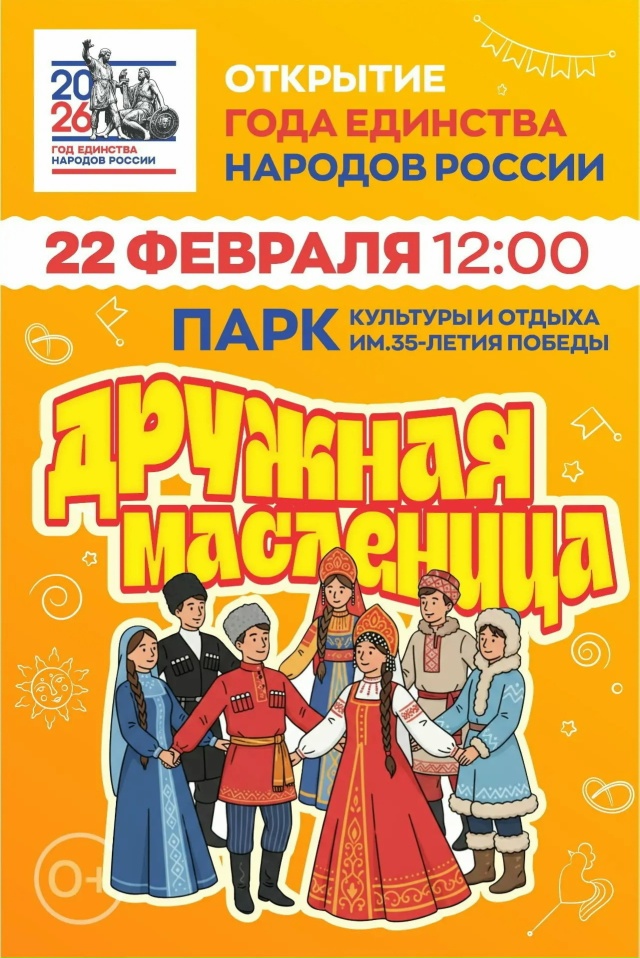 Год единства народов России в Кинешме откроется "Дружной Масленицей", сообщает пресс-служба администрации города в "ВКонтакте". Праздник пройдет в парке культуры и отдыха им. 35-летия Победы в воскресенье, 22 февраля.