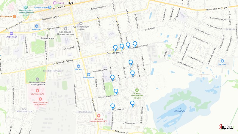 – пер. 2-й Фрунзе с ул. 1-я Фрунзе, с ул. 2-я Фрунзе, с ул. 5-я Фрунзе, ул. 7-я Фрунзе, с ул. 8-я Фрунзе;