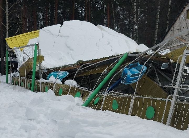 В минувшие выходные в парке "Харинка" в Иванове под тяжестью снега обрушилась крыша автодрома. К счастью, в момент обрушения аттракцион не работал, пострадавших нет. Об этом сообщает паблик "Иваново. Увидено. Подслушано" в "ВКонтакте".