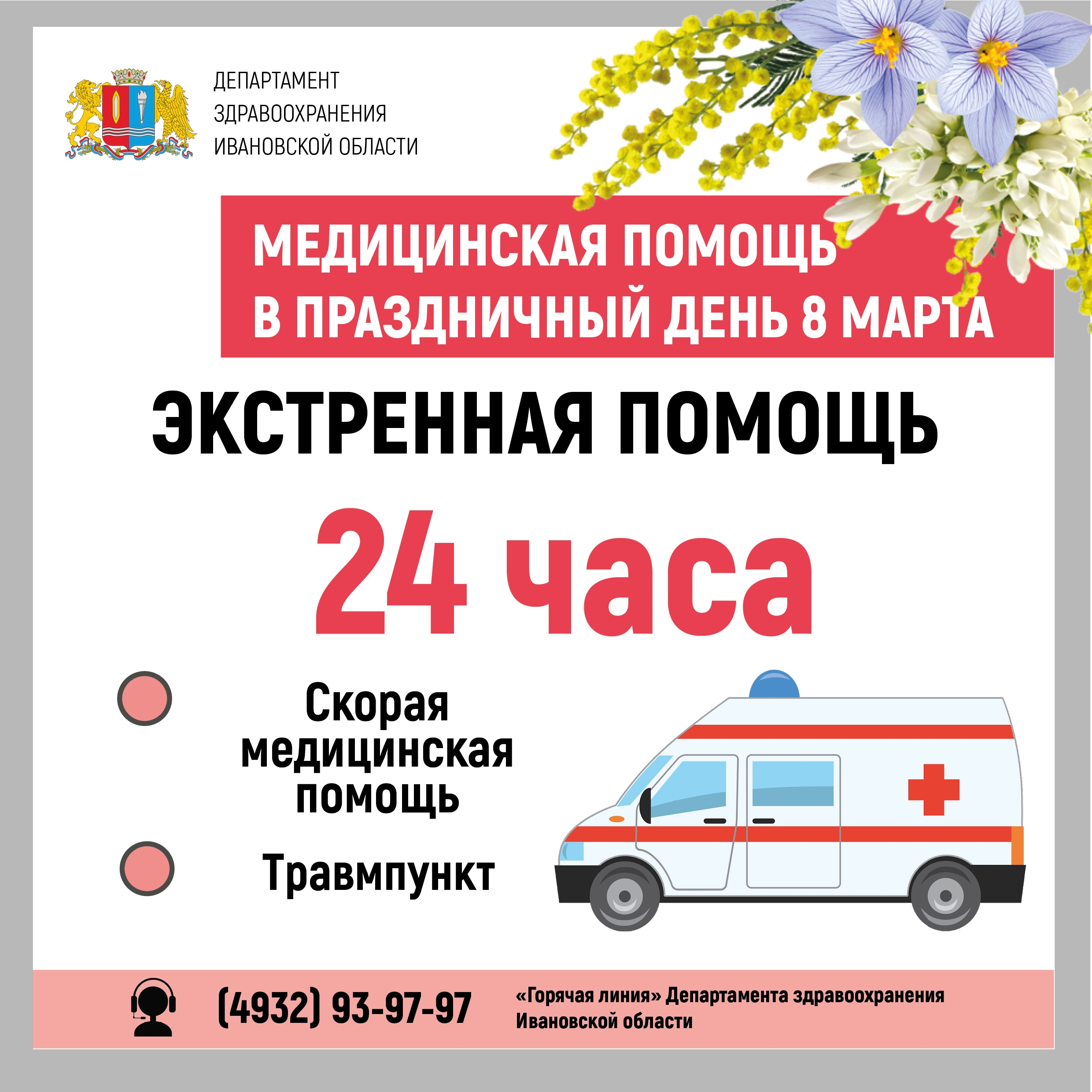 Скорая помощь и травмпункты будут работать 8 марта круглосуточно.