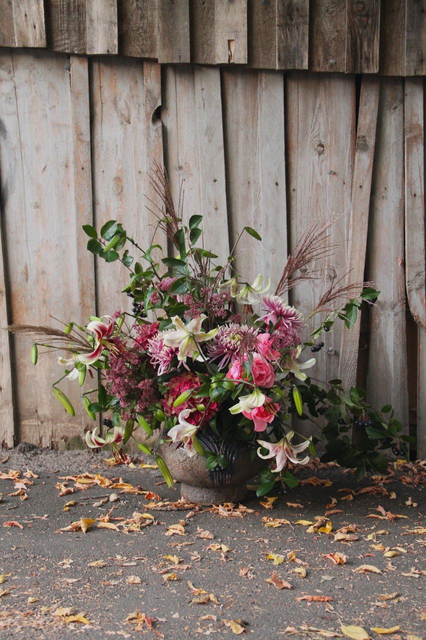Ну а вообще сочетается все, что угодно – все зависит от мастерства флориста. Можно подойти к витрине, сказать количество и виды цветов, и мастер составит любую композицию – даже если будет не совсем согласен с логикой построения букета.