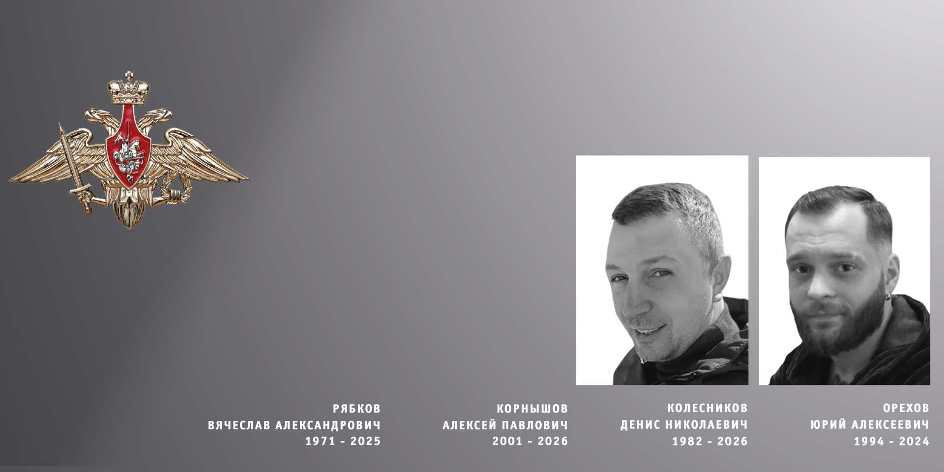 Бойцы Денис Николаевич Колесников, Алексей Павлович Корнышов, Юрий Алексеевич Орехов и Вячеслав Александрович Рябков проходили службу в воинских подразделениях других регионов. В ходе специальной военной операции они проявили мужество и героизм.