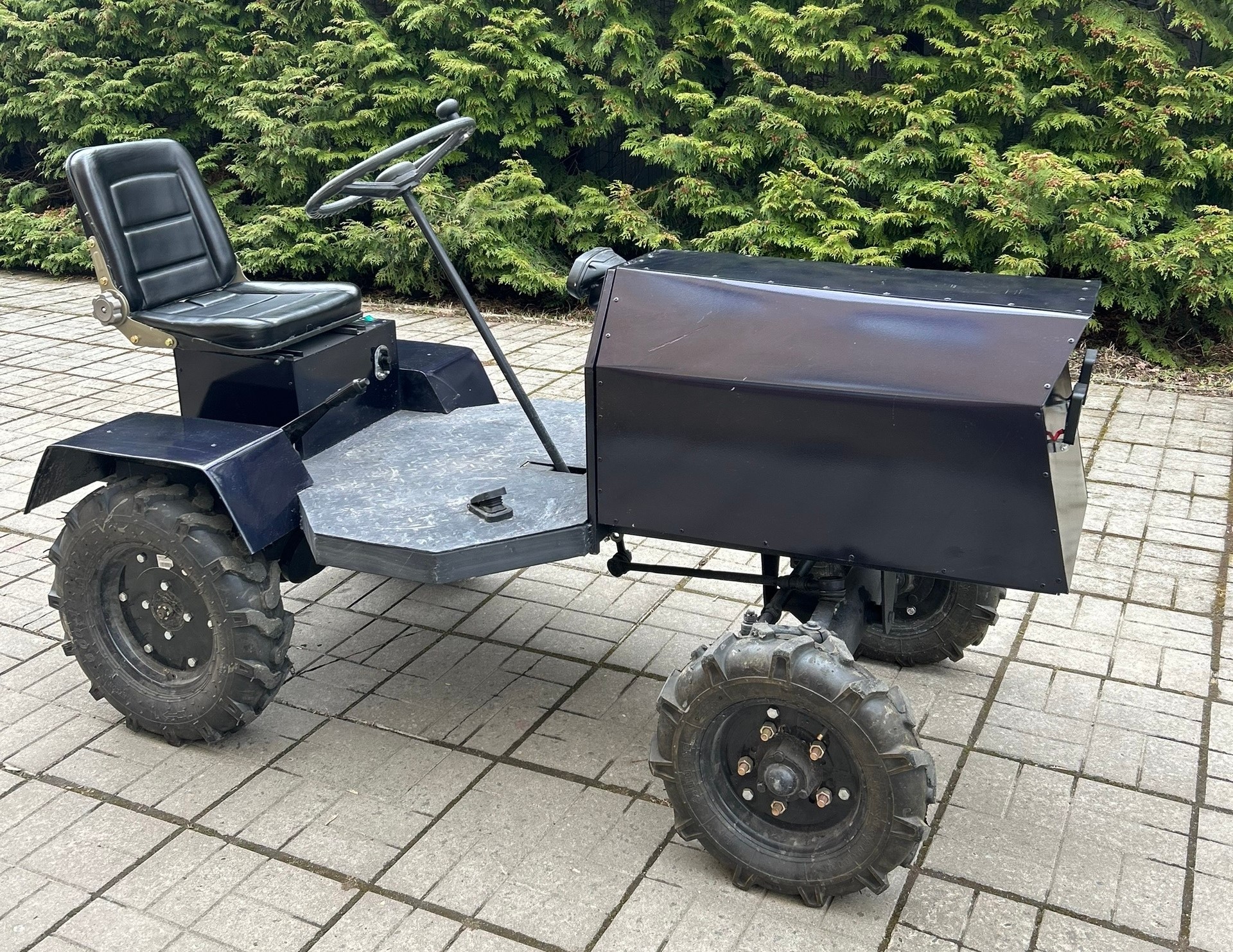 Компактная и экологичная машина предназначена для фермерских хозяйств, теплиц, садов и личных участков. Студенческий трактор работает без выхлопных газов, почти бесшумно и позволяет экономить на топливе, его грузоподъемность – 500 кг.