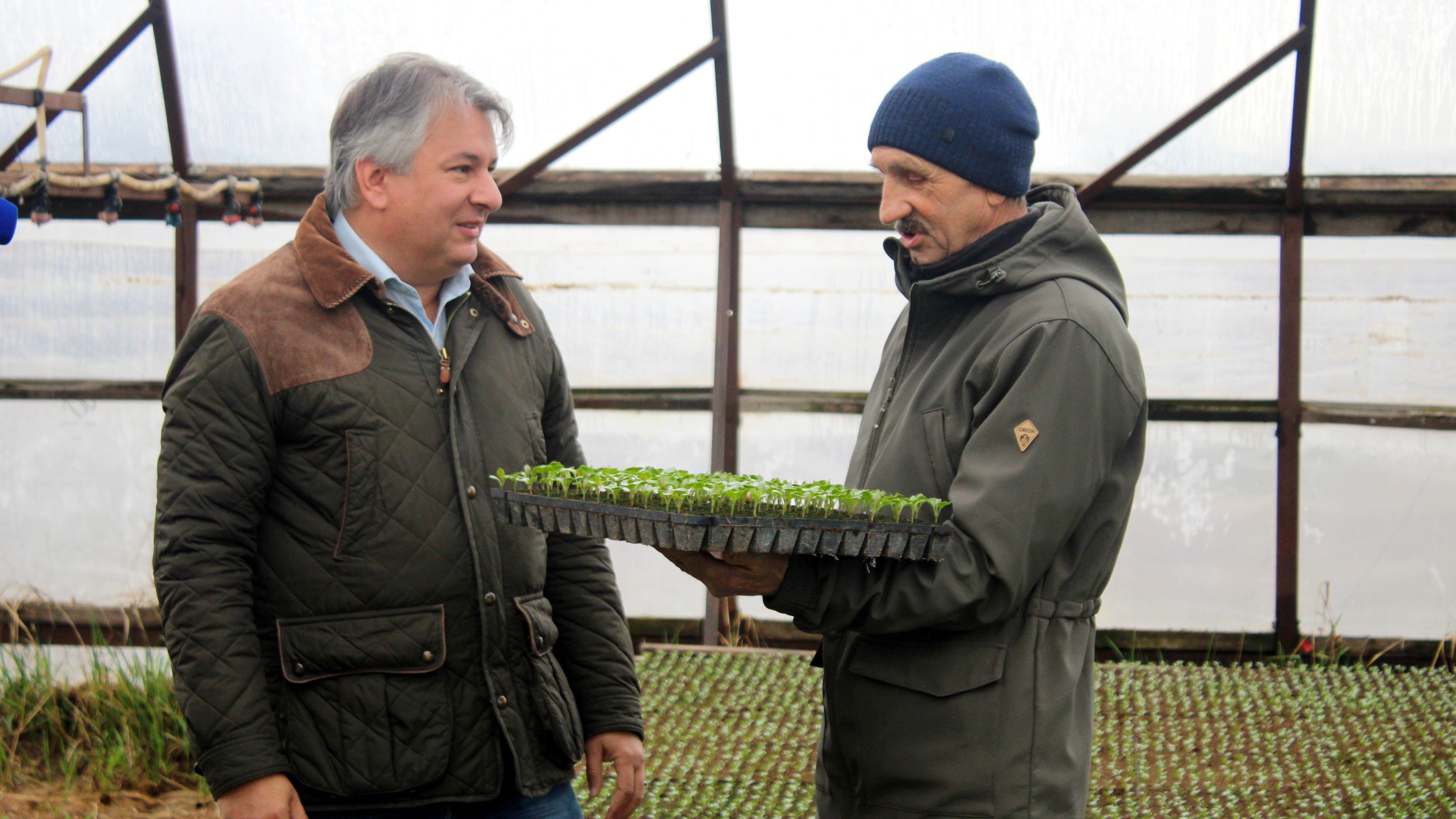 В хозяйстве Сергея Волкова, которое работает более 30 лет, к посевной подготовили 500 000 сеянцев капусты. Рассада ранних сортов уже взошла, поздние посеют чуть позже. В открытый грунт капусту начнут высаживать в конце мая. В гости к фермеру приехал зампред правительства региона Денис Черкесов.