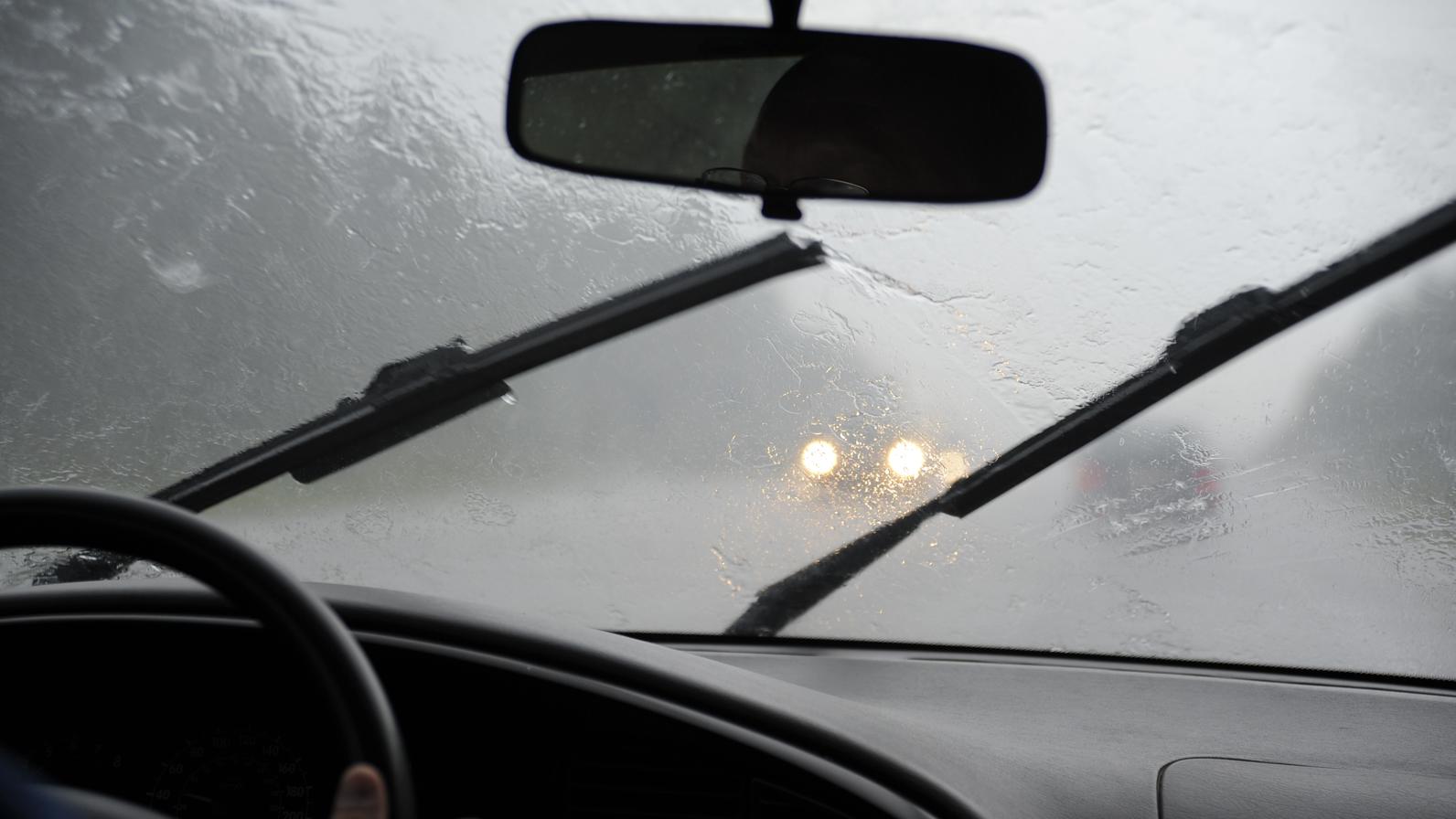 При сильном дожде снижать скорость или полностью остановиться; при плохой видимости включать противотуманные фары.