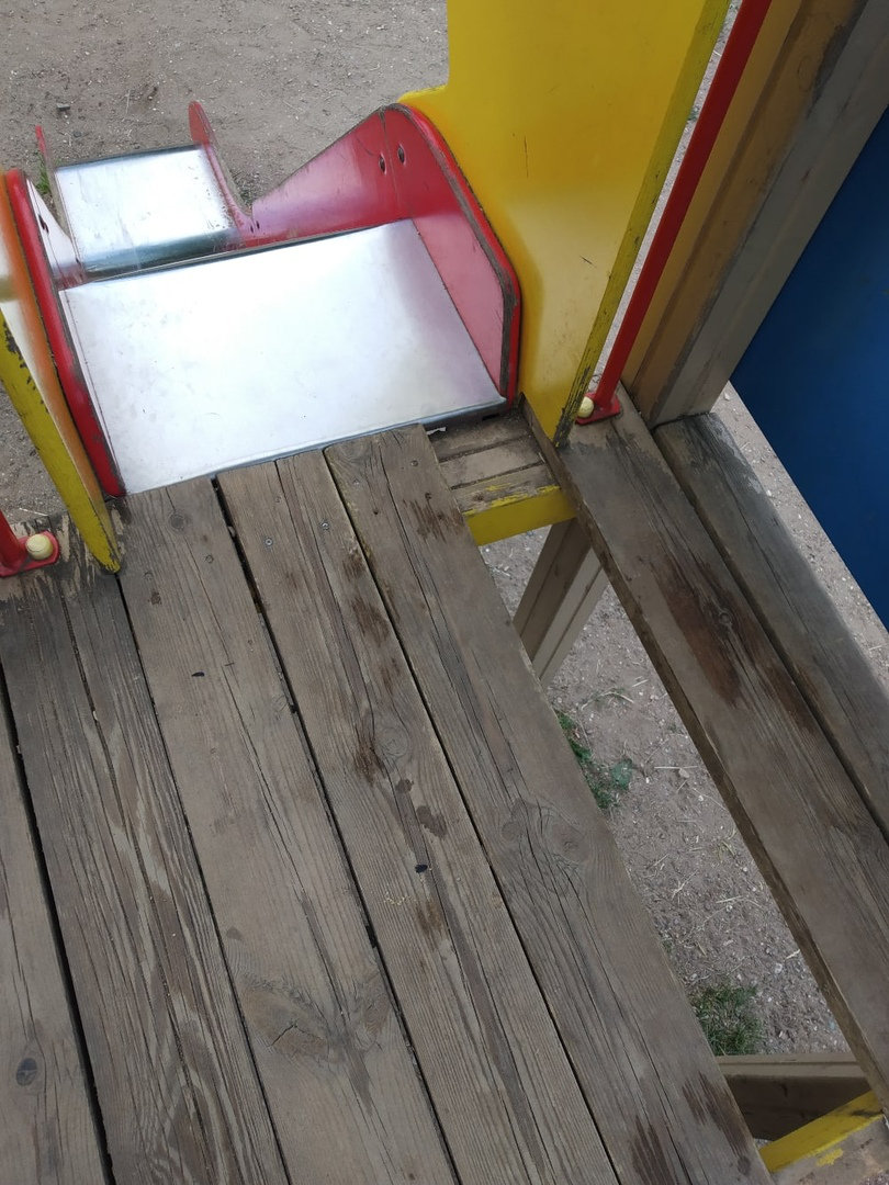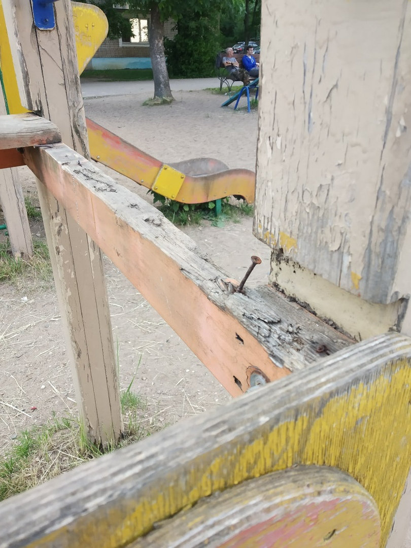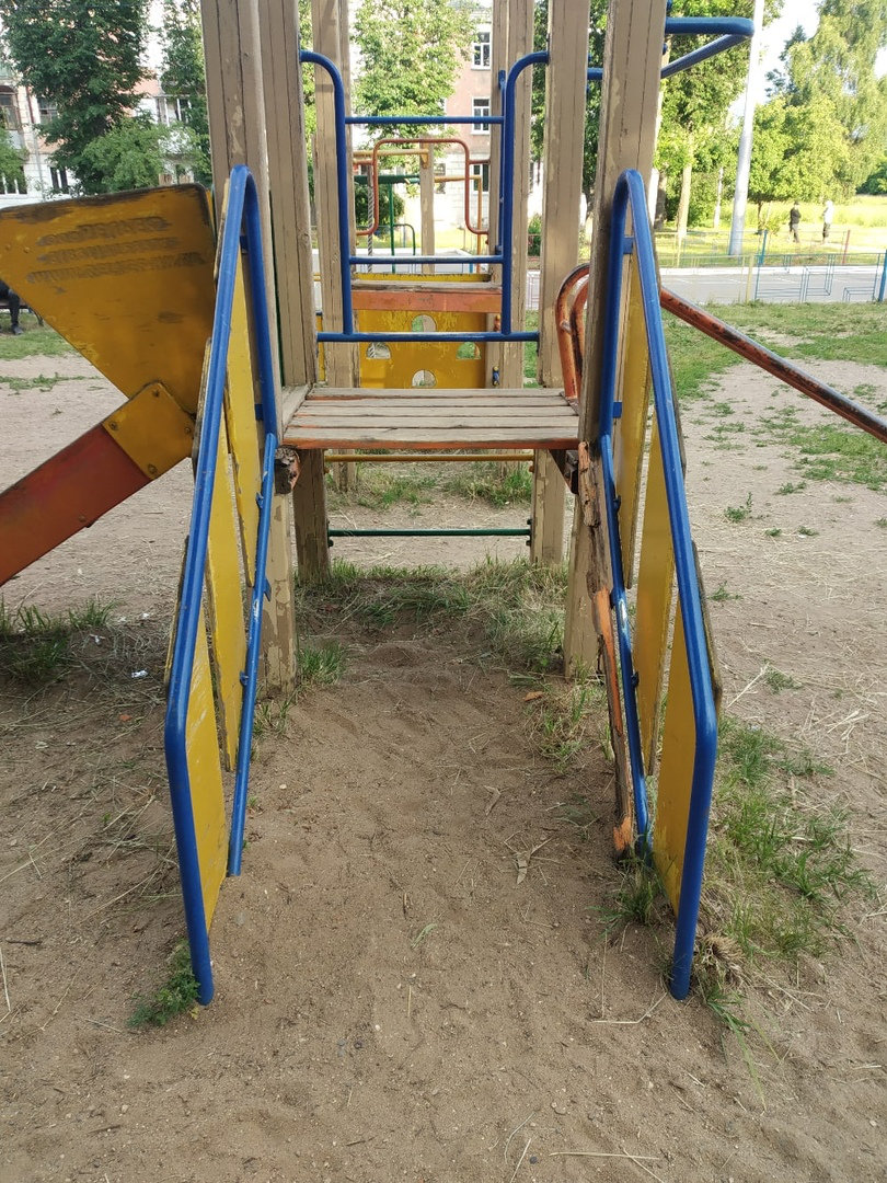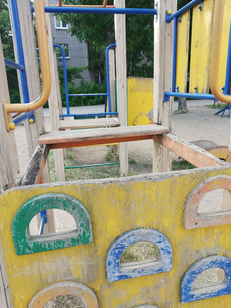 "Детская площадка в районе меланжевого комбината – в разрушенном состоянии, – пишет автор поста в социальных сетях. – Сегодня был случай, маленькая девочка подвернула ногу на горке, где нет доски. На лабиринте торчит одна проволока, в песочнице никогда нет песка".