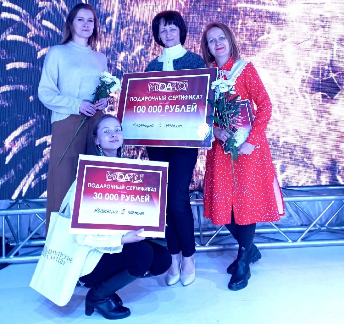 В награду дизайнеры получили сертификат на 100 000 руб. и возможность до марта 2022 г. разрабатывать и создавать новые коллекции на ивановских предприятиях. Коллекция "Пятый элемент" также получила спецприз в размере 30 000 руб. за инновационные решения в дизайне костюма.