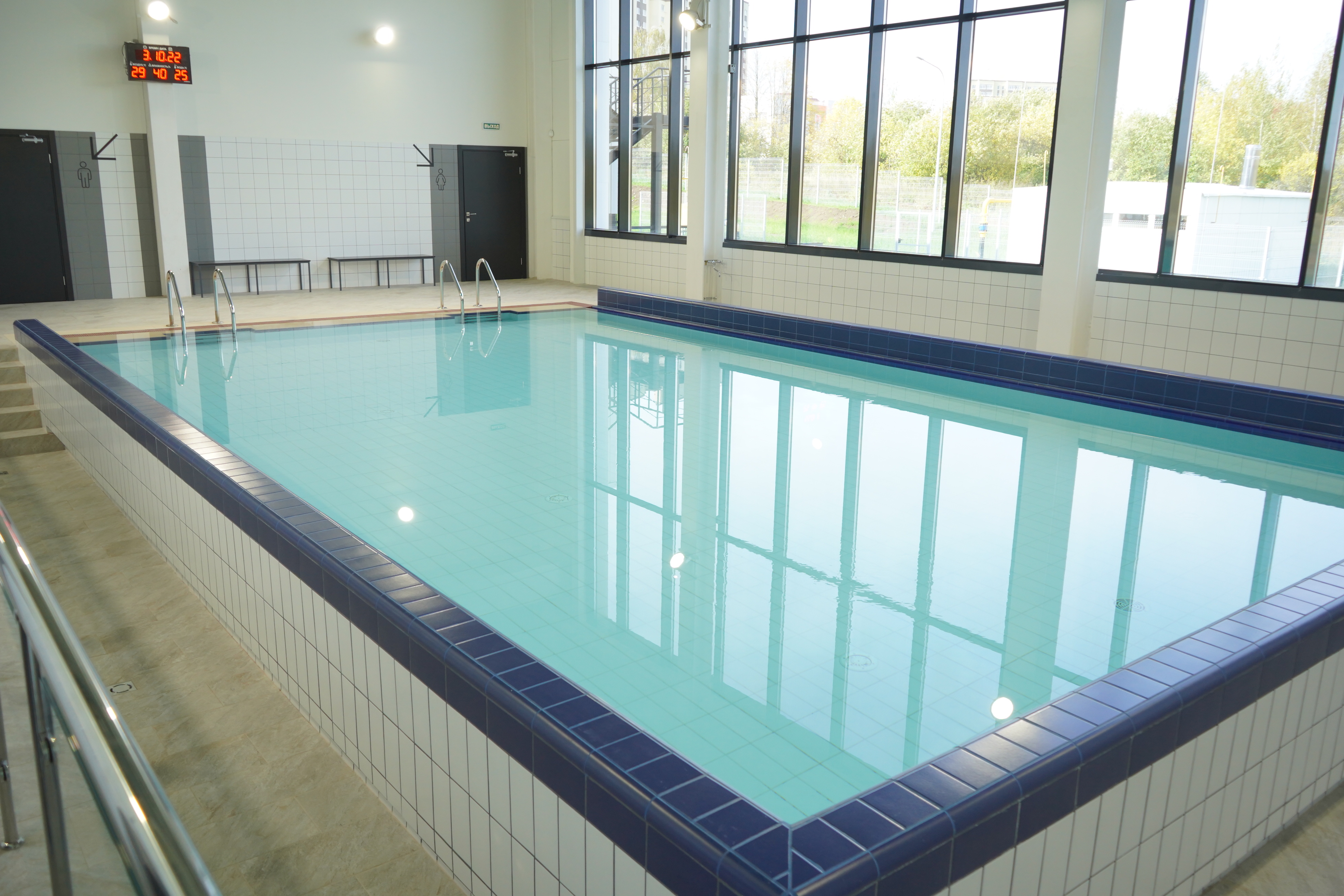 В ФОКе для спортсменов подрядчики построили ледовый каток площадью 1800 кв. м, два бассейна – 25-метровый для взрослых на шесть дорожек и 10-метровый для детей, зал для общей физической подготовки, раздевалки, душевые, тренерские и лаборатории анализа воды.