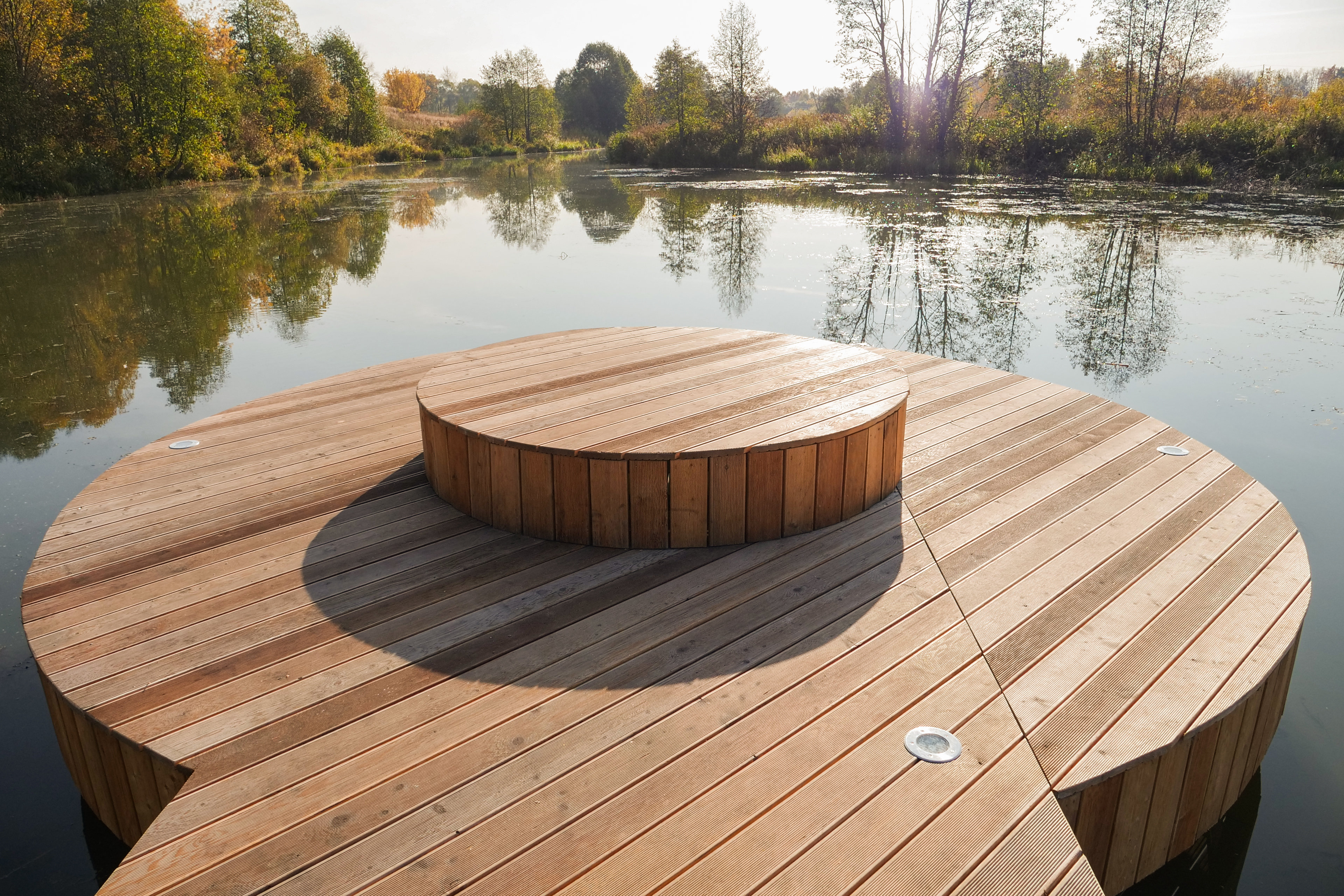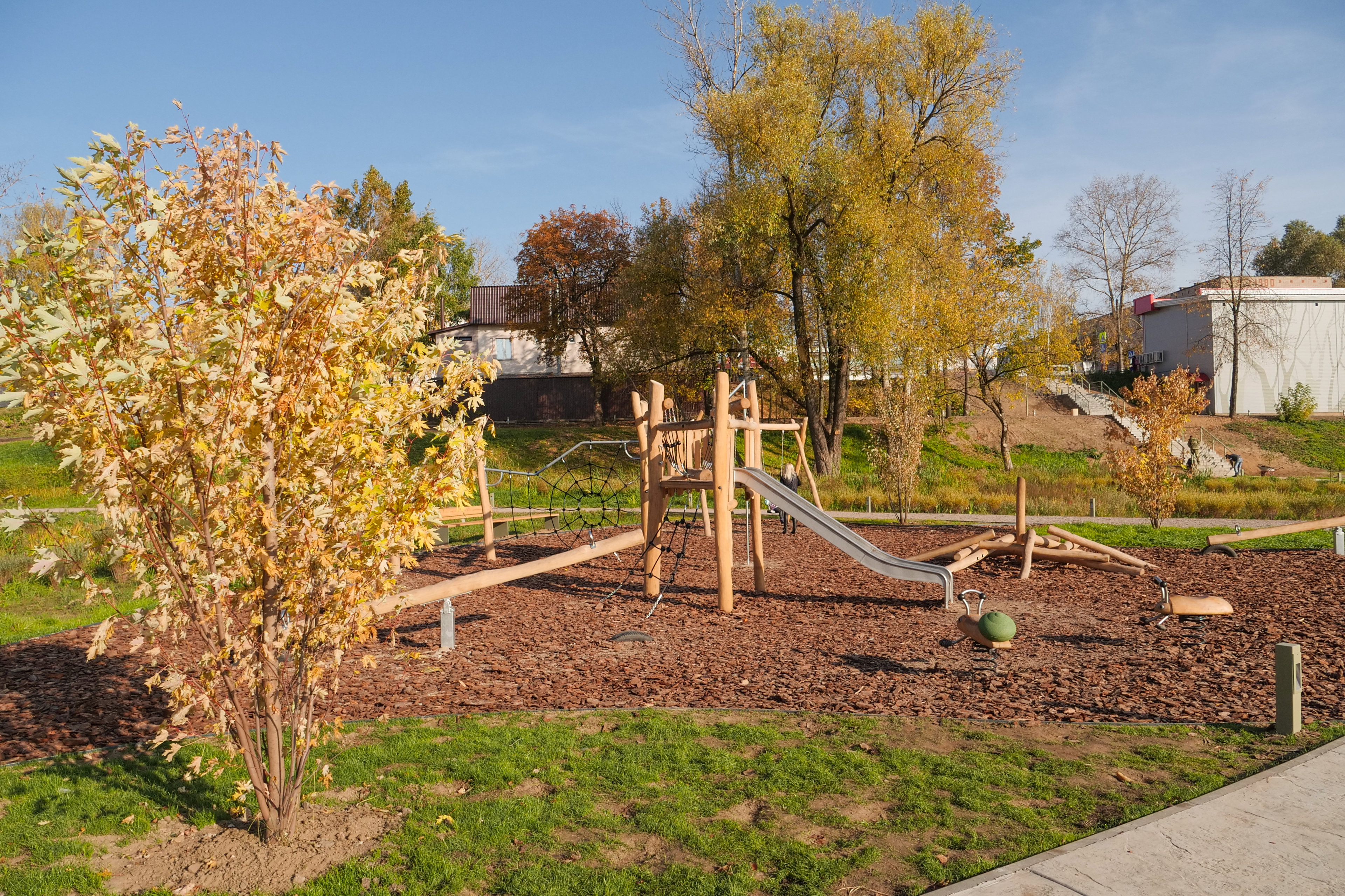 Подрядчик "САНТЭЛС" отремонтировал мост через пруд, установил амфитеатр на пруду и сцену рядом. На набережной реки Вязьмы оборудовал пирсы и лестницы, место для велопарковки, детскую площадку и зону для барбекю. Территория теперь с освещением и видеонаблюдением, пешеходные дорожки – с различным покрытием.