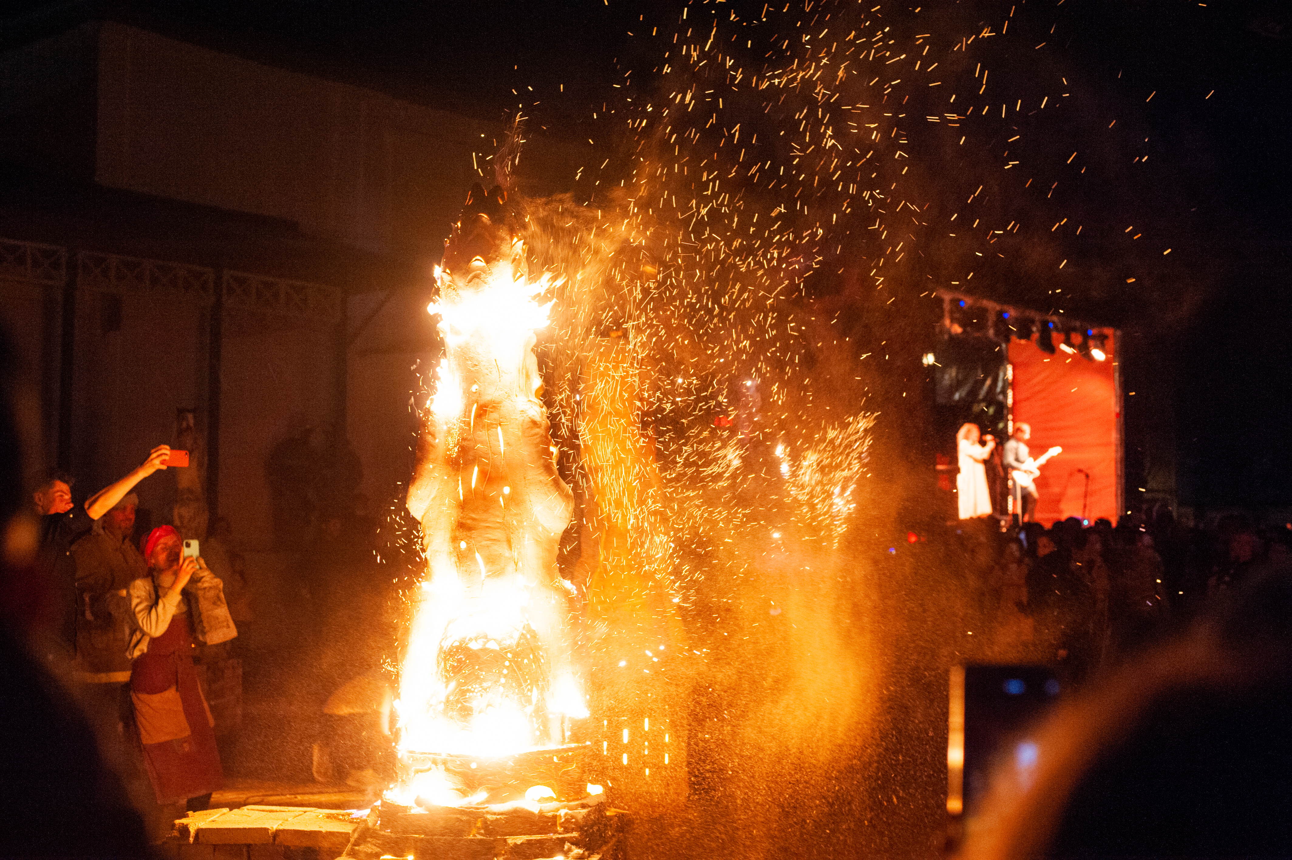 Как рассказала Известно.ру куратор проекта "Палех. Воскресение" Марина Галкина, в течение двух недель скульпторы-керамисты из Нижнего Новгорода, Омска, Пскова вместе с палехскими художниками создавали фигуры из черной глины: Льва, Феникса, огненного Серафима… Фигуры обжигали прямо на площади, после чего они приняли окончательный вид и стали белого цвета. В рамках фестиваля керамисты сделали пять скульптур. Они станут первыми экспонатами Арт-центра. "У нас первый такой опыт, создания таких скульптур. Это игра слов, смыслов. Мы попробовали и получилась Арт-резиденция-преображение-эксперимент", – добавила Галкина.