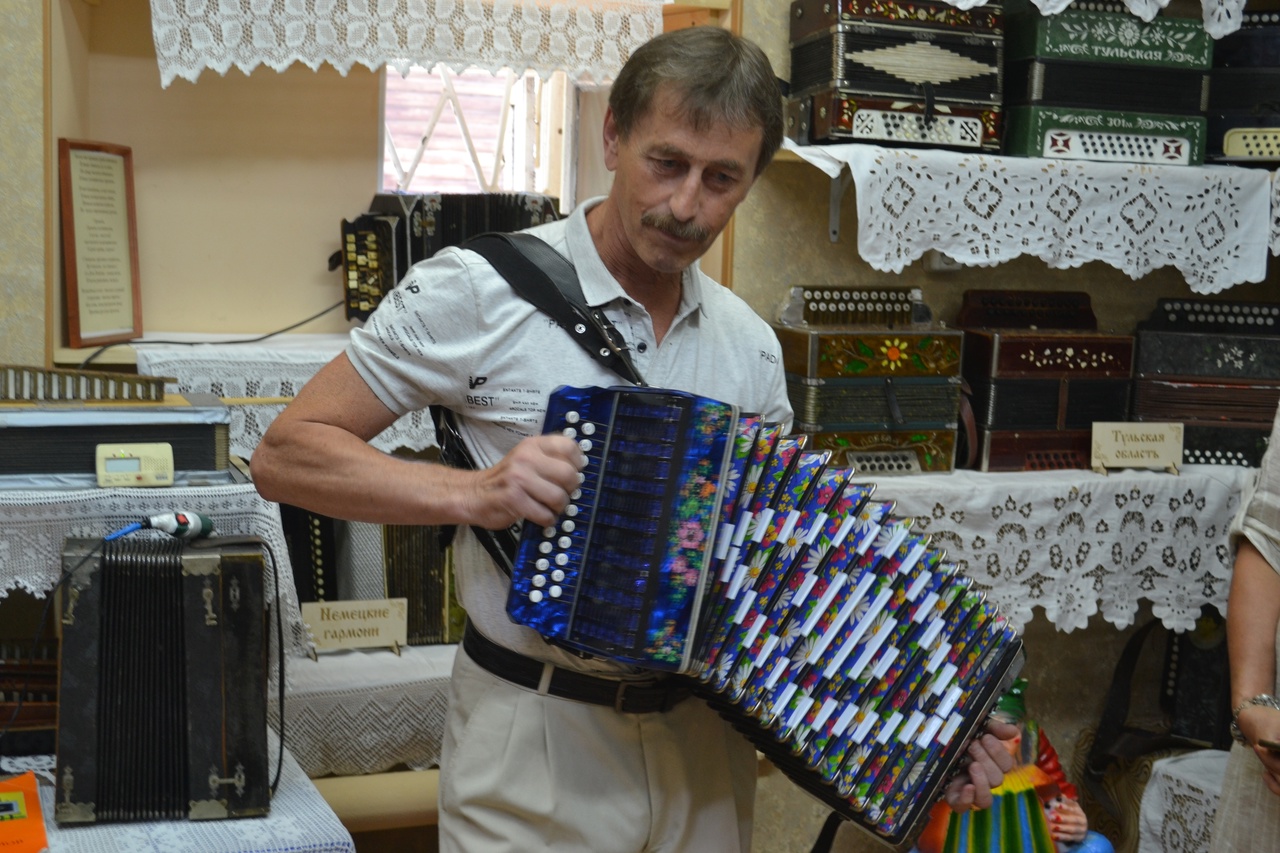 Также в музее есть зал, где собраны гармошки, еще одна страсть главы семьи Валерия Соколова.