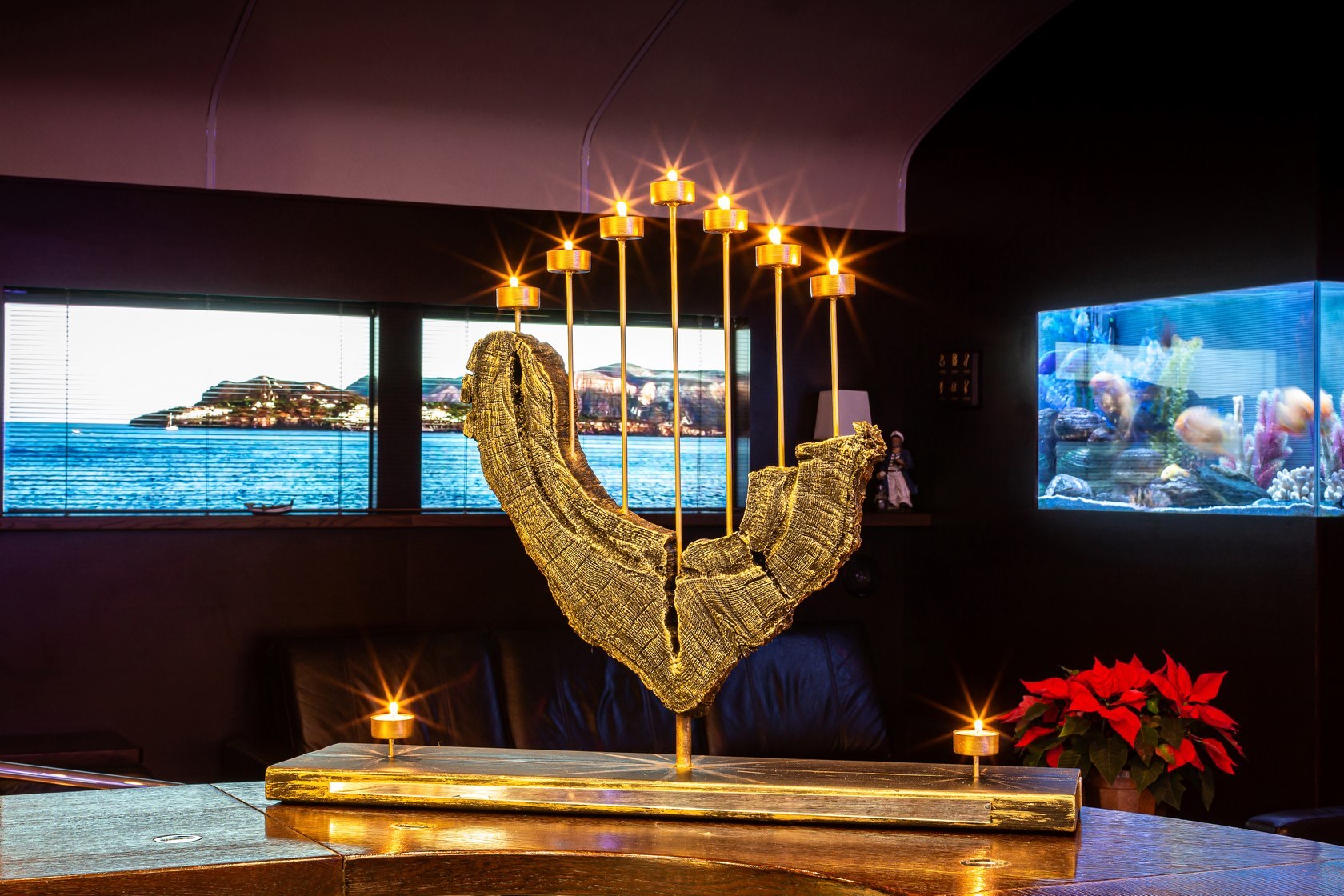 "В композициях природный материал получает вторую жизнь. Исходя из конечной задумки, мастер использует осколки старинных витражных стекол, привезенных из Италии, отшлифованные морем кусочки сицилийской керамики, причудливые ветки калифорнийских кораллов или бронзовые фигурки животных", – сообщается на сайте Плесского музея-заповедника.