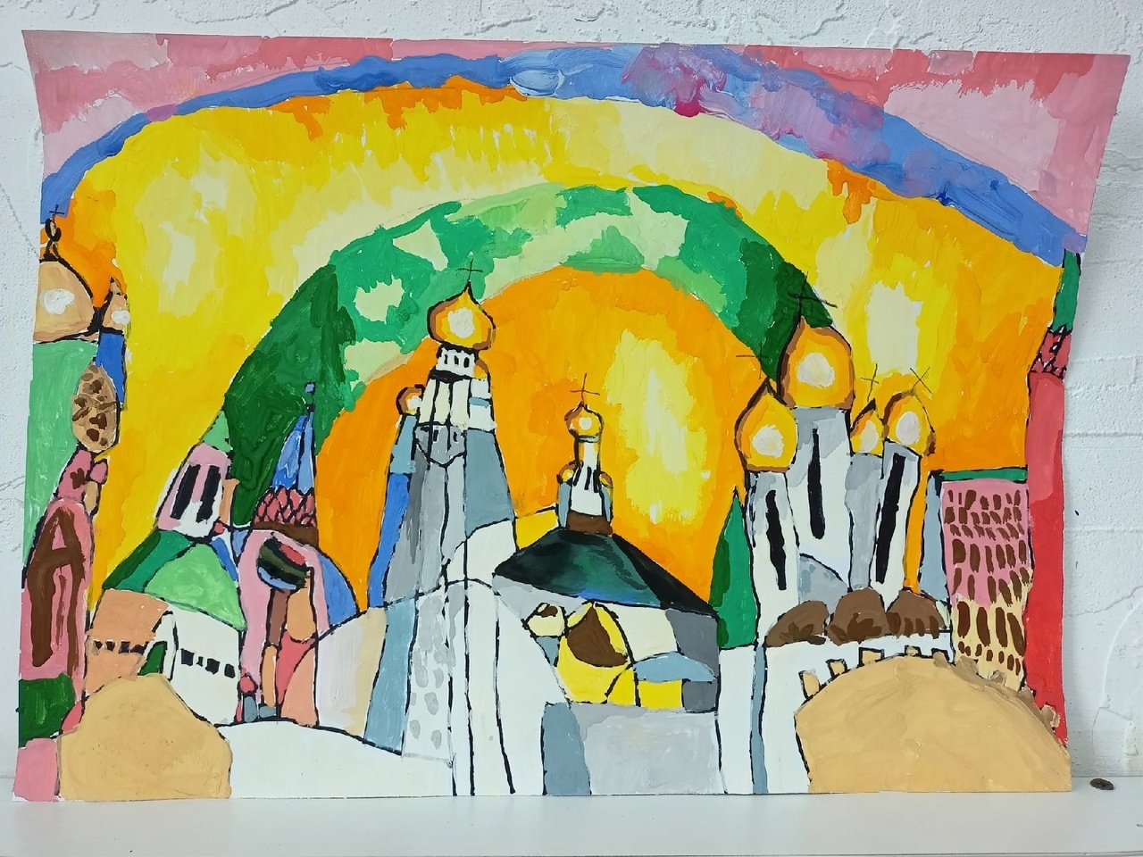 "Настя ходит заниматься рисованием в одну из художественных студий Иванова, и наша педагог Светлана Рябикова помогла выбрать картину для конкурса – мы рисовали картину Аристарха Лентулова "Небозвон" из Ярославского художественного музея. Рисовала Настя эту работу долго – почти два месяца, в картине очень много мелких деталей. Только на прорисовку неба ушло два занятия", – рассказала собеседница. По ее словам, заявку на конкурс они с дочкой подали в числе первых и на одном из начальных этапов работу Насти выбрал хедлайнер конкурса, музыкант, актер и лидер группы "Несчастный случай" Алексей Кортнев.