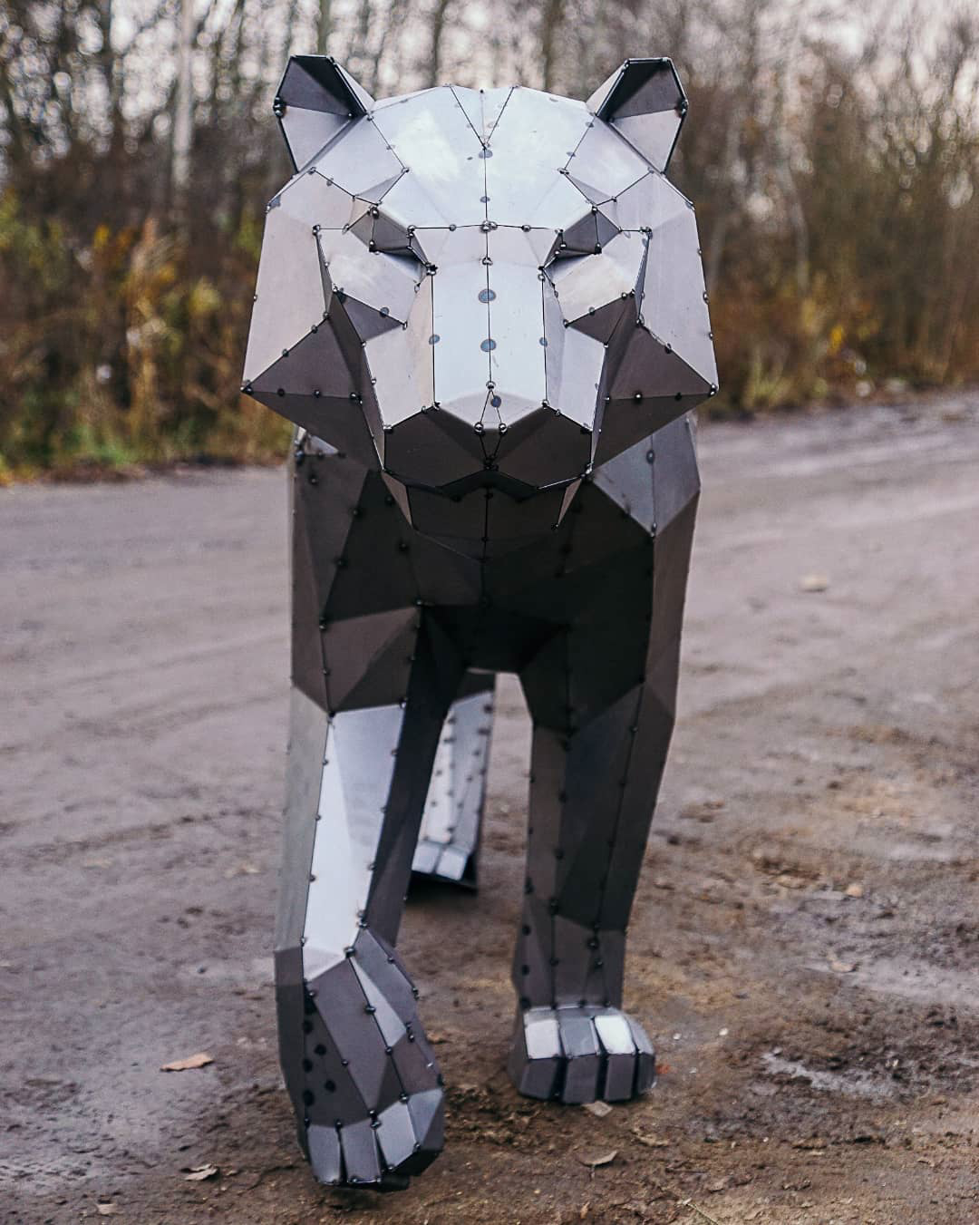Известно.ру писал, что скульптуры выполнены в технике полигонального моделирования. "Суть заключается в том, чтобы 3D модель, существующую в цифровом формате, разложить на отдельные фрагменты и собрать её реальную копию. Это достаточно новое направление, и оно совсем не распространено. Я пытаюсь о нем рассказать людям, потому что этим можно удивить человека. Мне всегда хотелось заниматься чем-то особенным, тем, что еще никто не делал. На технику полигонального моделирования я наткнулся случайно в интернете. И затем самостоятельно сделал первую фигуру. С этого все и закрутилось", – рассказал скульптор.