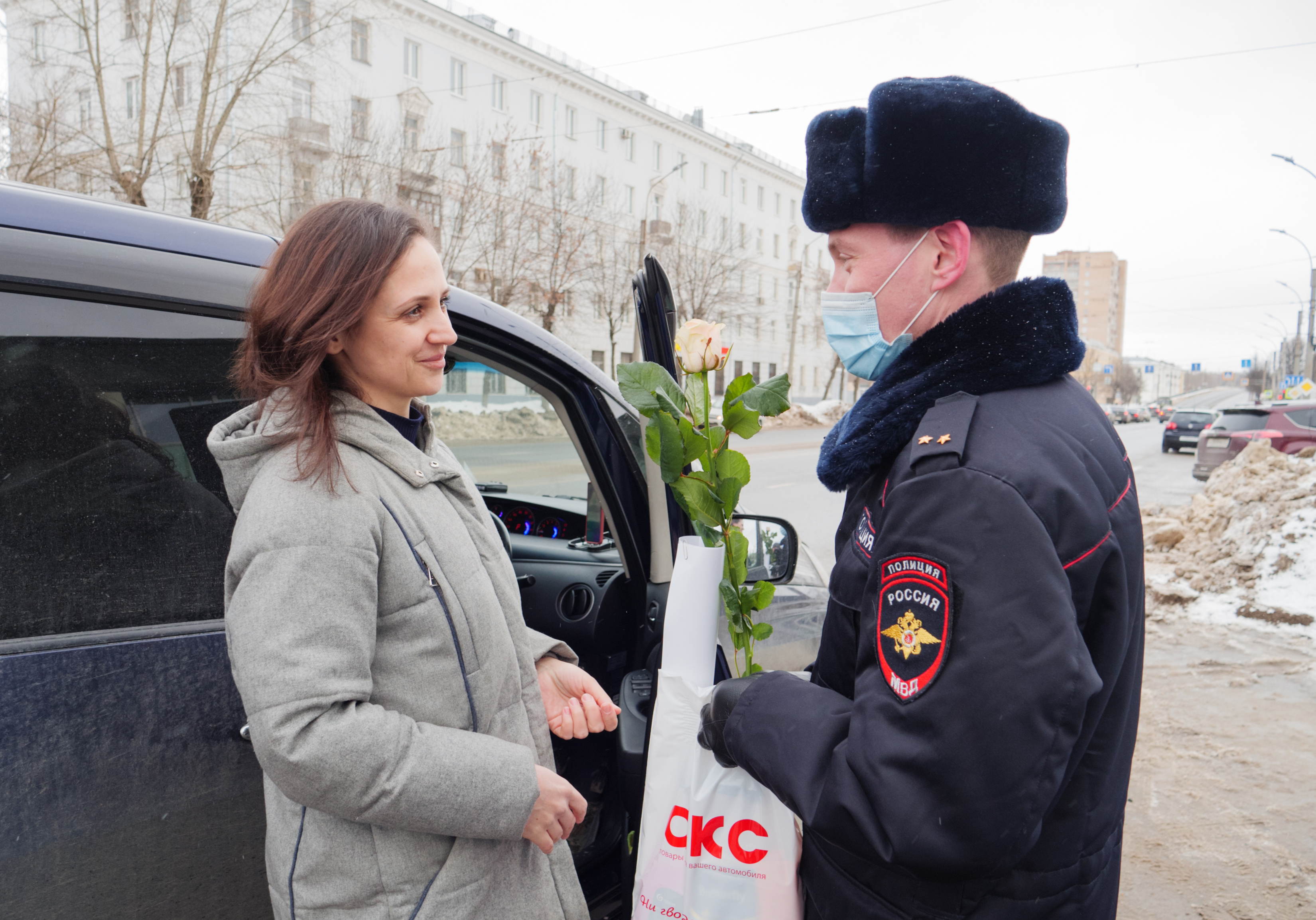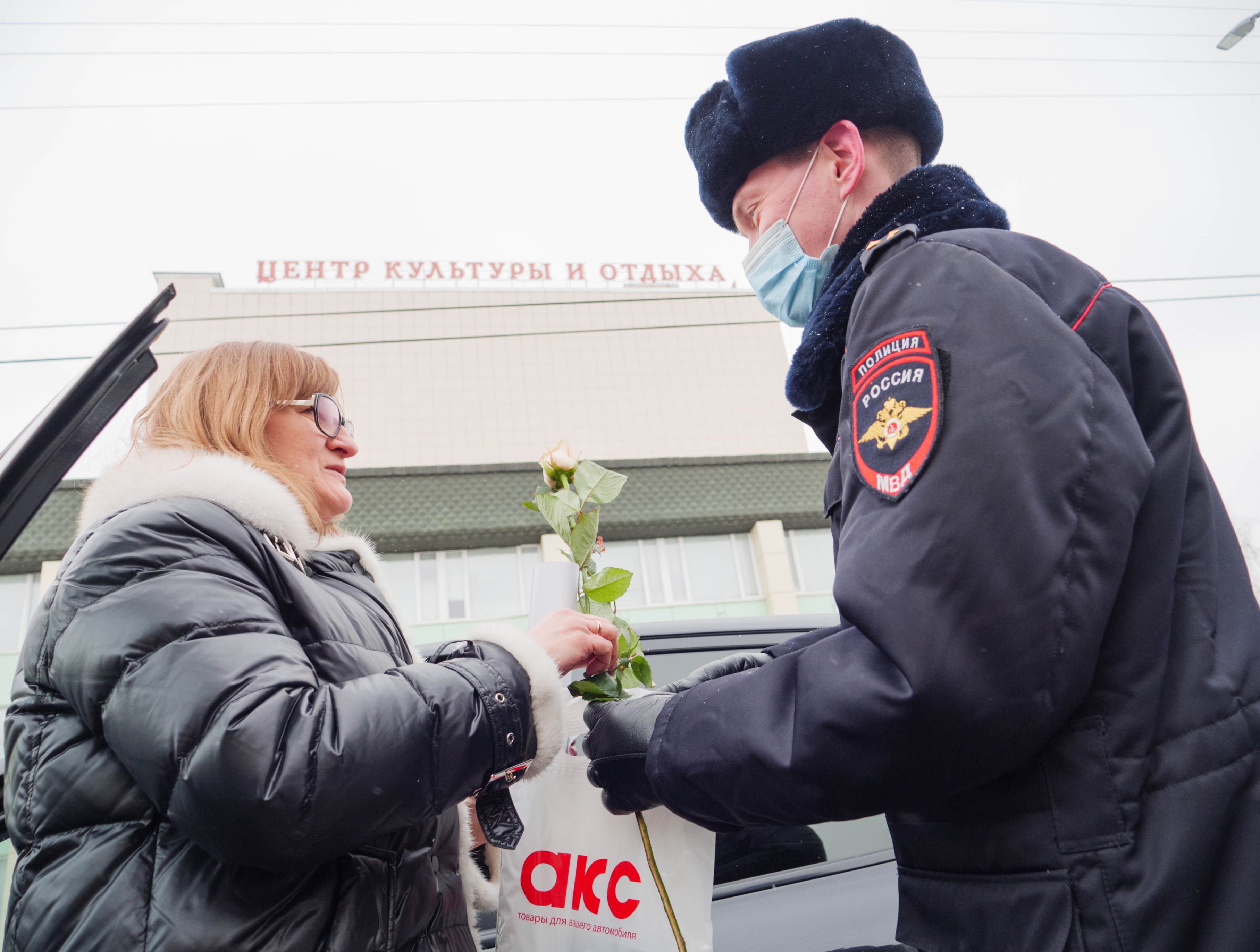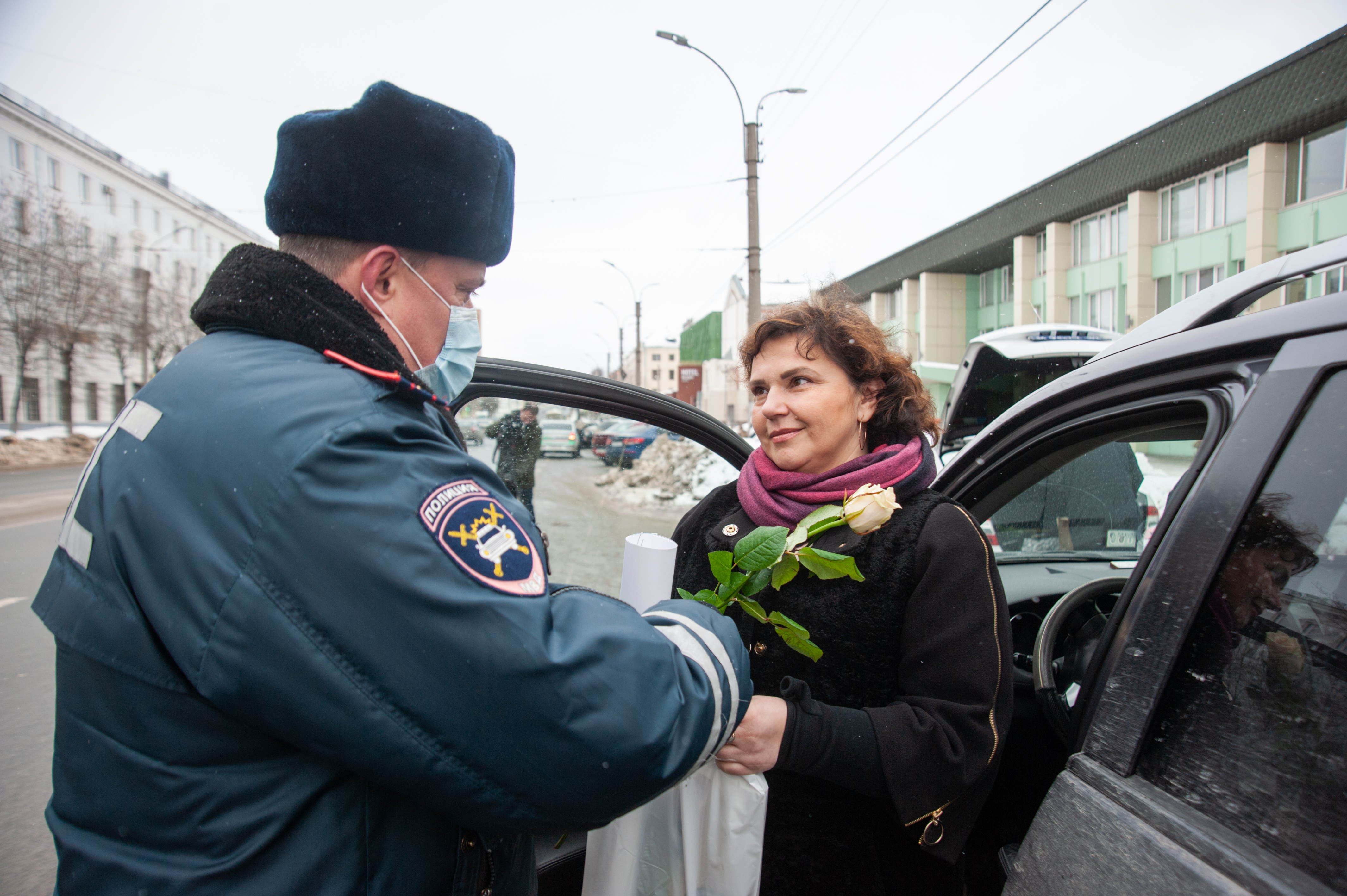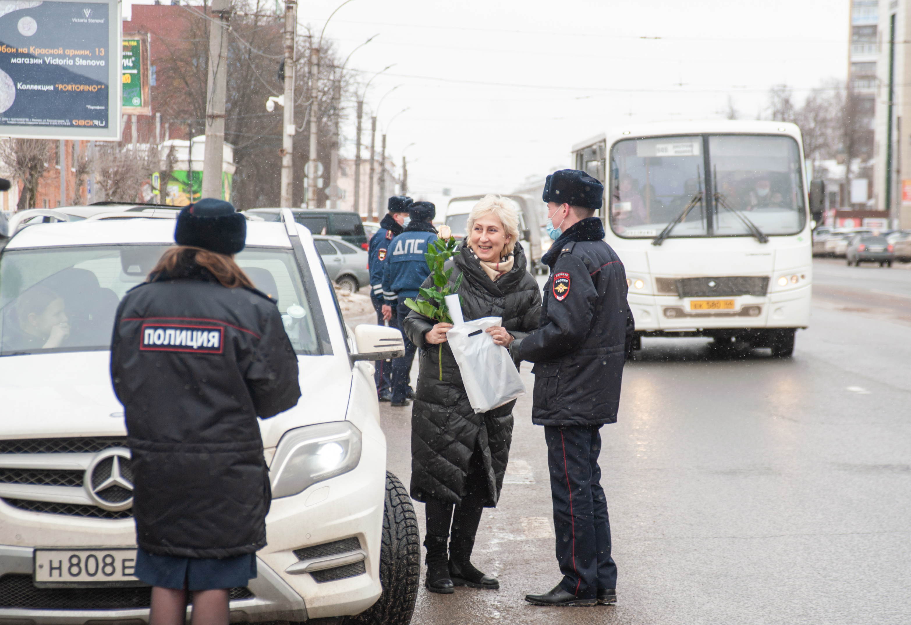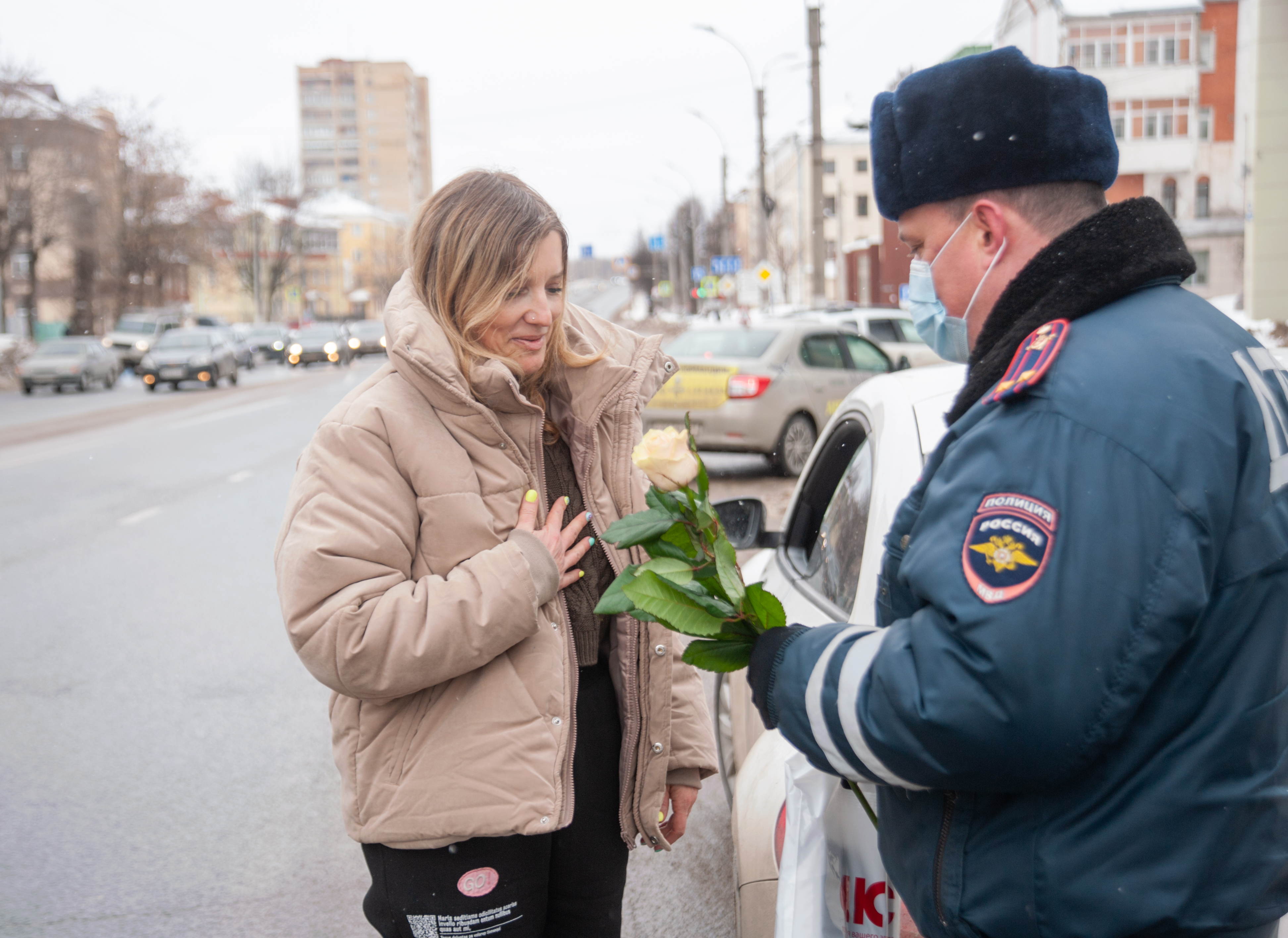 Инспекторы ГИБДД поздравили ивановских автомобилисток с наступающим 8 Марта